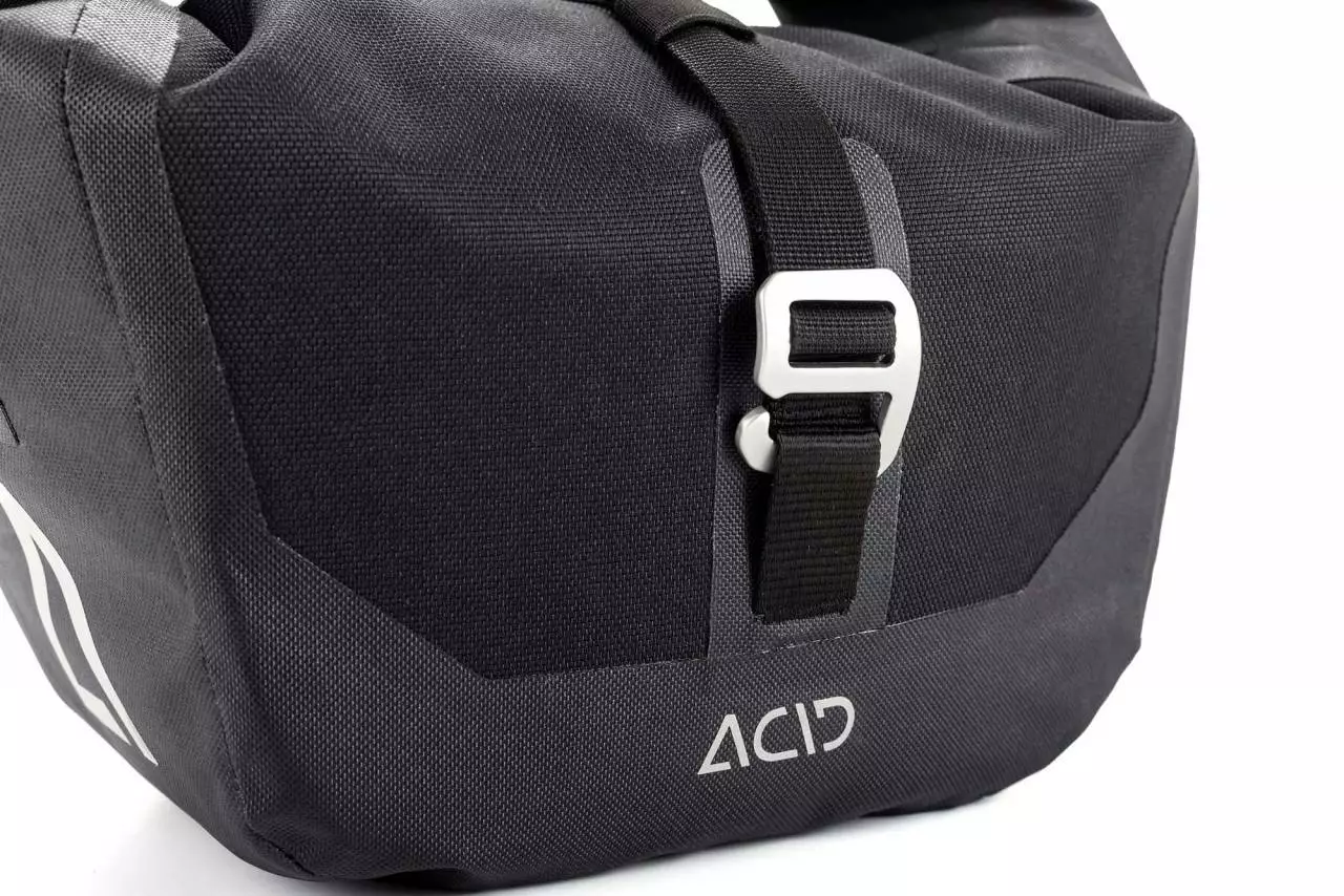 Funktionales, wasserdichtes Front-Travel-Bag mit ACID FILink für eine schnelle und sichere Befestigung. Erfüllt dank Schultertragegurt auch per Pedes seine Dienste!