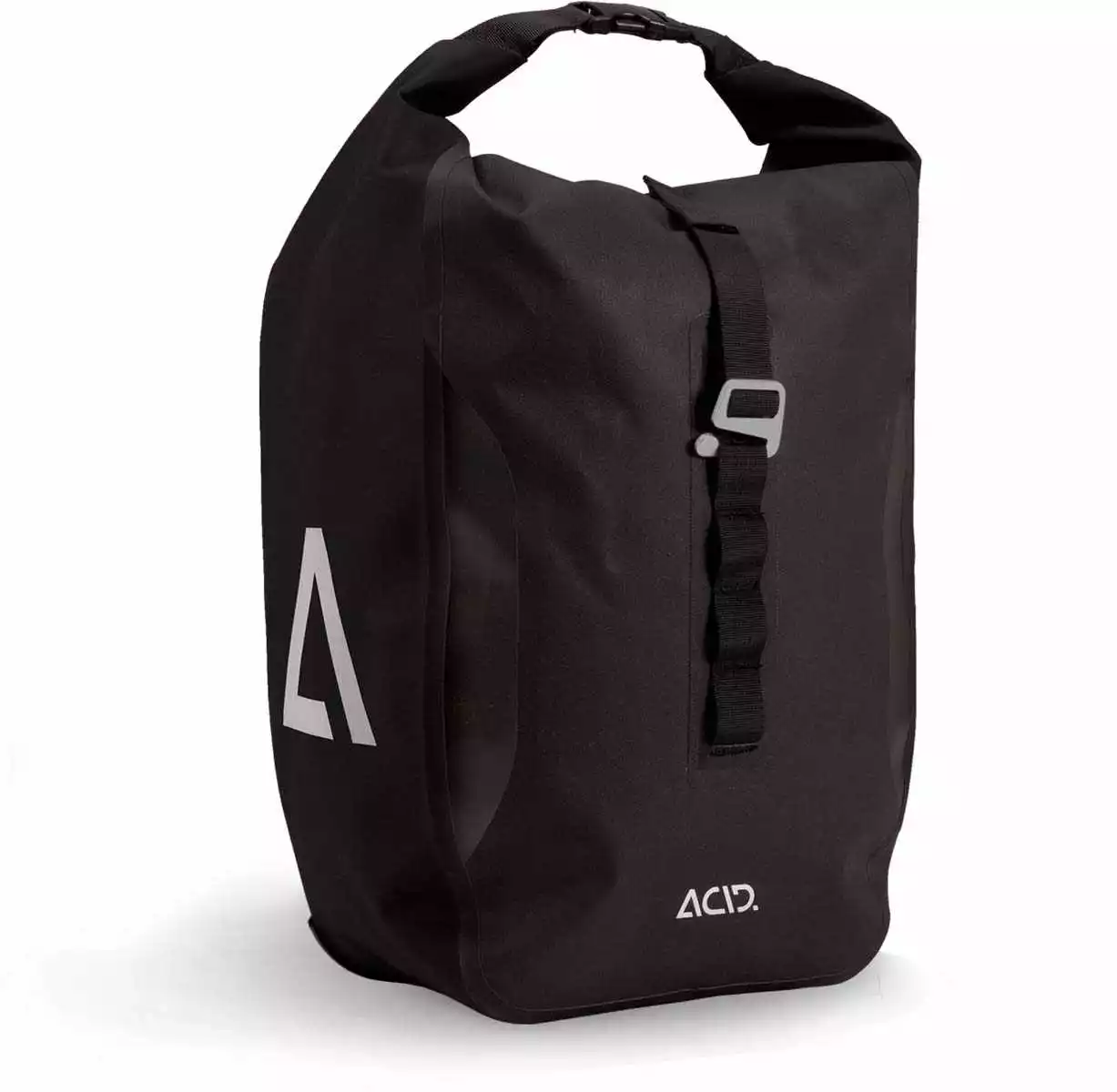 Die abriebfeste, wasserdichte TRAVLR PRO 15 Bag mit verschweißter Konstruktion und ACID Einhängesystem gewährleistet eine schnelle und sichere Befestigung. Erfüllt dank Schultertragegurt auch nach Abstellung des Bikes zu Fuß seine Dienste. Die Reflektoren sorgen für eine gute Sichtbarkeit.
