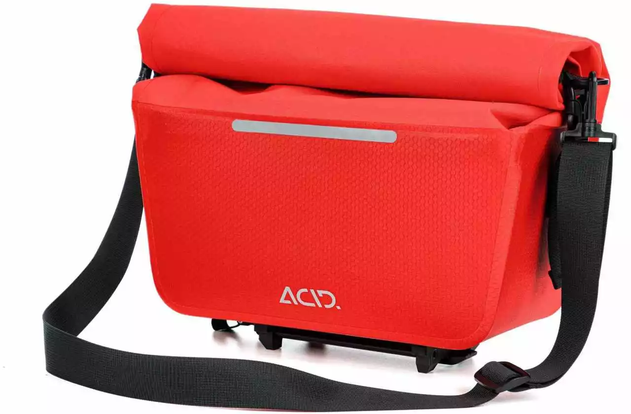 | Features | kompatibel mit allen RILink Gepäckträgern von ACID und CUBE; ACID RILink; wasserabweisend; abriebfestes Außenmaterial; PVC-frei; verschweißte Konstruktion; Schultertragegurt; reflektierende Elemente |