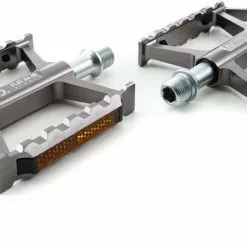 | Features | leichtes Flat-Pedal; CNC-gefräster Aluminiumkörper und CrMo Achse; große Standfläche; extrem flache Bauweise; integrierte Pins; gedichtete Industrielager; inklusive Reflektoren |