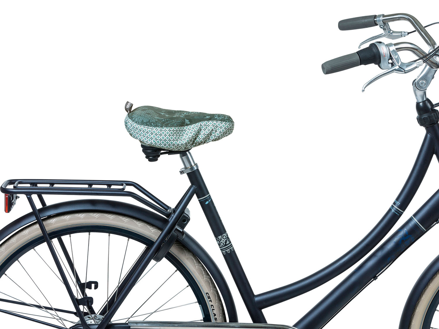 Basil rundet mit diesem wasserdichten Sattelüberzug das Designprogramm der Boheme Serie ab.