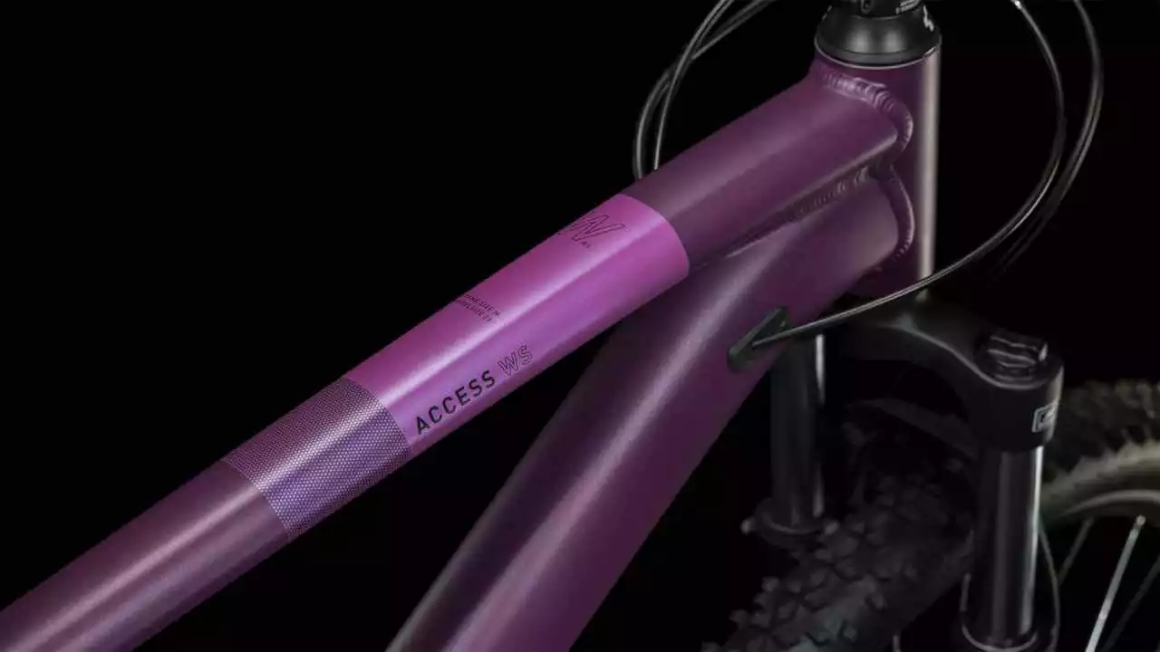 Der Access WS Rahmen besticht durch seine sehr aufgeräumte Optik. Denn die Verbindung zwischen Steuerrohr und Sattelstützenprofil erfolgt im Smooth Welding Verfahren. Der Zug wurde nach innen verlegt, damit er lange funktioniert und einfacher zu warten ist. Eine Flat Mount-Scheibenbremsaufnahme, die sich nahtlos in die Seitenständerhalterung integriert. Außerdem gibt es Befestigungspunkte für ACID-Schutzbleche und Gepäckträger. Die Geometrie hat ein niedrigeres Oberrohr für ein zuverlässigeres Handling und viel Platz für breite, griffige und komfortabel rollende 2,25-Zoll-Reifen. Zudem wurde das SizeSplit-System weiterentwickelt. So findet jeder Fahrer seine perfekte Access WS-Rahmengröße.