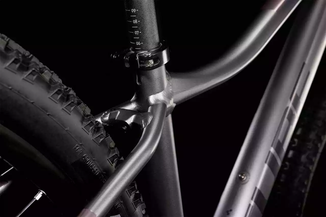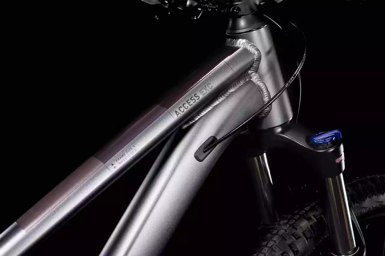 Der brandneue Access WS EXC Rahmen besticht 2022 mit einem überarbeiteten, supercleanen Look. Verantwortlich dafür: die im Smooth Welding Verfahren hergestellten Verbindungen am Steuerrohr und Sattelstützenprofil. Außerdem haben wir ihm ein geschraubtes Tretlager gegeben und die Züge ins Innere verlegt, damit sie ihre Aufgabe lange machen und leicht gewartet werden können. Dazu gibt’s eine Aufnahme für eine Flat-Mount-Scheibenbremse und einen Seitenständer. Montagepunkte für ACID Schutzbleche und Gepäckträger sind auch mit dabei. Die überarbeitete Geometrie ist speziell auf die weibliche Anatomie abgestimmt. Sie hat ein niedrigeres Oberrohr für noch zuverlässigeres Handling und lässt viel Platz für breite, griffige, komfortabel rollende 2.25 Zoll Reifen. Auch haben wir unser Size Split System jetzt breiter aufgestellt – dadurch findet jede Fahrerin die perfekt passende Access WS EXC Rahmengröße für sich.