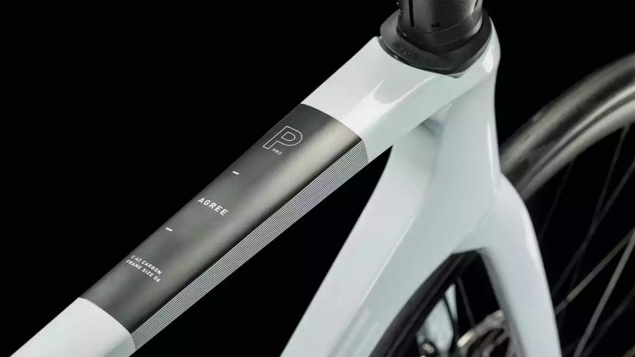 Ab einer bestimmten Geschwindigkeit ist es nicht mehr am Fahrer, ob noch ein paar Millisekunden schneller drin sind, sondern am Bike. Deshalb haben wir uns bei der Entwicklung des Agree C:62 von unseren High-End-Rennrad- und Zeitfahr-Rahmen inspirieren lassen. Das Ergebnis ist ebenso aerodynamisch wie ästhetisch ansprechend – ein Allround-Chassis aus Carbon, das wir zugunsten von wenig Gesamtgewicht und hohem Fahrkomfort mit schlanken Sitzstreben und durchdacht geformten Rohrsätzen feinabgestimmt haben. Außerdem sind die Schalt- und Bremszüge semi-integriert, was das Handling optimiert und den Wartungsaufwand reduziert. Optional lässt sich eine Rahmenbox montieren, in der Energieriegel oder Werkzeug Platz finden, falls die Tour doch mal länger dauert als geplant.