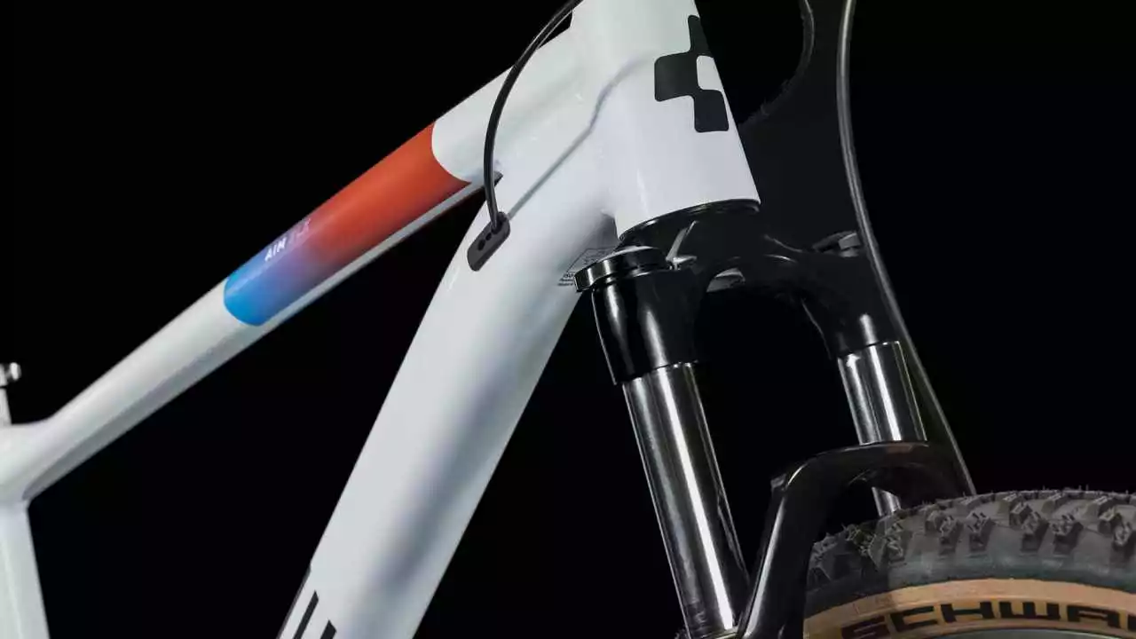 Volle Power schön und gut, aber man muss diese Power auch im Griff haben. Gut, dass wir das Aim SLX mit einer geschmeidig arbeitenden RockShox Federgabel mit Lockout ausgestattet haben, die Schläge und Ruckler vom Untergrund souverän abdämpft. Außerdem haben wir ihm leistungsstarke hydraulische Scheibenbremsen, ein konisch zulaufendes Steuerrohr und supergriffige 2.25 Zoll Reifen spendiert. Das Ergebnis ist ein kontrolliertes Fahrgefühl, egal wohin die Reise geht. Und für die breit gefächerte 2×9-Gang Schaltung ist keine Route zu lang und kein Anstieg zu steil – du hast per Fingerzeig immer den richtigen Gang zur Auswahl. Last, but not least kann der Rahmen mit einer versenkbaren Sattelstütze nachgerüstet werden. Keine Ausreden mehr, jetzt geht’s los!