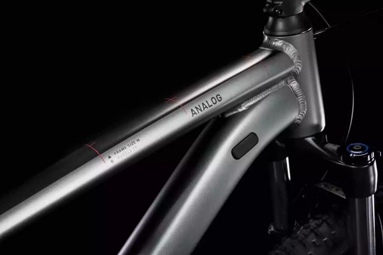 Der brandneue Analog Rahmen besticht 2022 mit einem überarbeiteten, supercleanen Look. Verantwortlich dafür: das im Smooth Welding Verfahren hergestellte Steuerrohr und Sattelstützenprofil. Außerdem haben wir ihm ein geschraubtes Tretlager gegeben und die Züge ins Innere verlegt, damit sie ihre Aufgabe lange machen und leicht gewartet werden können. Es gibt sogar eine Aufnahme für eine Flat-Mount-Scheibenbremse, die nahtlos in die Seitenständeraufnahme integriert ist. Montagepunkte für ACID Schutzbleche und Gepäckträger sind auch mit dabei. Die überarbeitete Geometrie hat ein niedrigeres Oberrohr und konifiziertes Steuerrohr für noch zuverlässigeres Handling. Die Kabelzüge verlaufen im Inneren, was die Wartung erleichtert. Außerdem bleibt viel Platz für breite, griffige und komfortabel rollende 2.25 Zoll Reifen. Wir haben unserem SizeSplit System übrigens weitere Größenoptionen hinzugefügt – dadurch findet jeder und jede die perfekt passende Analog Rahmengröße für sich. Und da mit wachsendem Fahrkönnen auch die Ansprüche steigen, kann der Rahmen mit einer versenkbaren Sattelstütze ausgestattet werden.