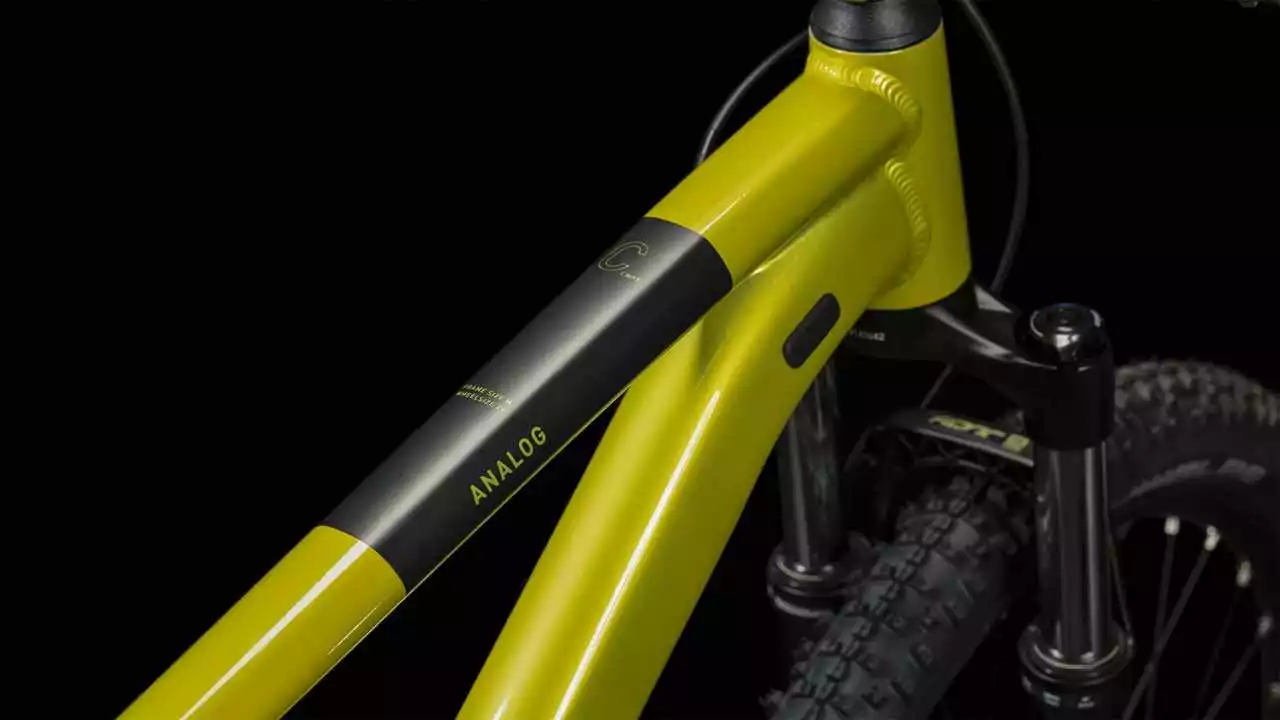 Der Analog Rahmen besticht mit seinem supercleanen Look. Verantwortlich dafür: die im Smooth Welding Verfahren hergestellten Verbindungen am Steuerrohr und Sattelstützenprofil. Außerdem haben wir ihm ein geschraubtes Tretlager gegeben und die Züge ins Innere verlegt, damit sie ihre Aufgabe lange machen und leicht gewartet werden können. Es gibt sogar eine Aufnahme für eine Flat Mount Scheibenbremse, die nahtlos in die Seitenständeraufnahme integriert ist. Montagepunkte für ACID Schutzbleche und Gepäckträger sind auch mit dabei. Die überarbeitete Geometrie hat ein niedrigeres Oberrohr und konifiziertes Steuerrohr für noch zuverlässigeres Handling. Außerdem bleibt viel Platz für breite, griffige und komfortabel rollende 2.25 Zoll Reifen. Auch haben wir unser SizeSplit System jetzt noch breiter aufgestellt – dadurch findest du mit Sicherheit die perfekt passende Kombination aus Analog Laufrad- und Rahmengröße für dich. Und da mit wachsendem Fahrkönnen auch die Ansprüche steigen, kann das Chassis mit einer versenkbaren Sattelstütze ausgestattet werden.