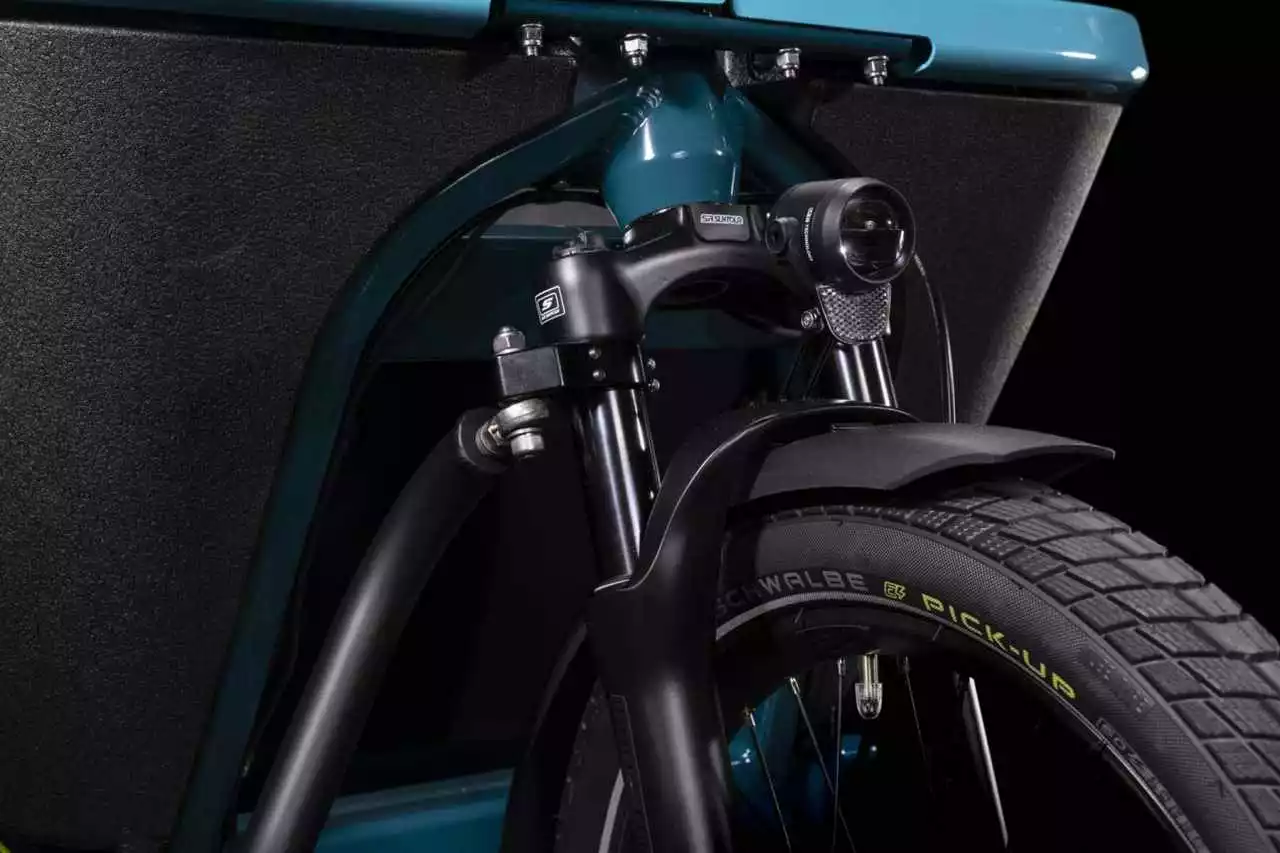 Einfach dem Verkehr davonradeln und seine Ladung pünktlich ans Ziel bringen – das geht mit dem Cargo Dual Hybrid ganz einfach. Verantwortlich dafür sind sein geschmeidig arbeitendes, leistungsstarkes Bosch Cargo Line Antriebssystem der vierten Generation, eine stufenlos verstellbare Nabenschaltung und ein Paar leistungsstarke 500 Wh Akkus für maximale Reichweite. Die große Transportbox transportiert selbst sperriges oder schweres Hab und Gut sicher und leicht ans Ziel, optional gibt’s ein Regenverdeck und einen doppelten Kindersitz mit dazu. Hell leuchtende LED-Vorder- und Rücklichter, griffige Schwalbe Reifen und kraftvoll zupackende hydraulische Magura Scheibenbremsen vermitteln ein sicheres und zuverlässiges Fahrgefühl, selbst bei widrigem Wetter. Eine Extraportion Komfort und Kontrolle bringen die Suntour Federgabel, Schutzbleche und Seitenständer mit. Kurz: alles, was man braucht, um schnell und sicher anzukommen – ohne Auto!