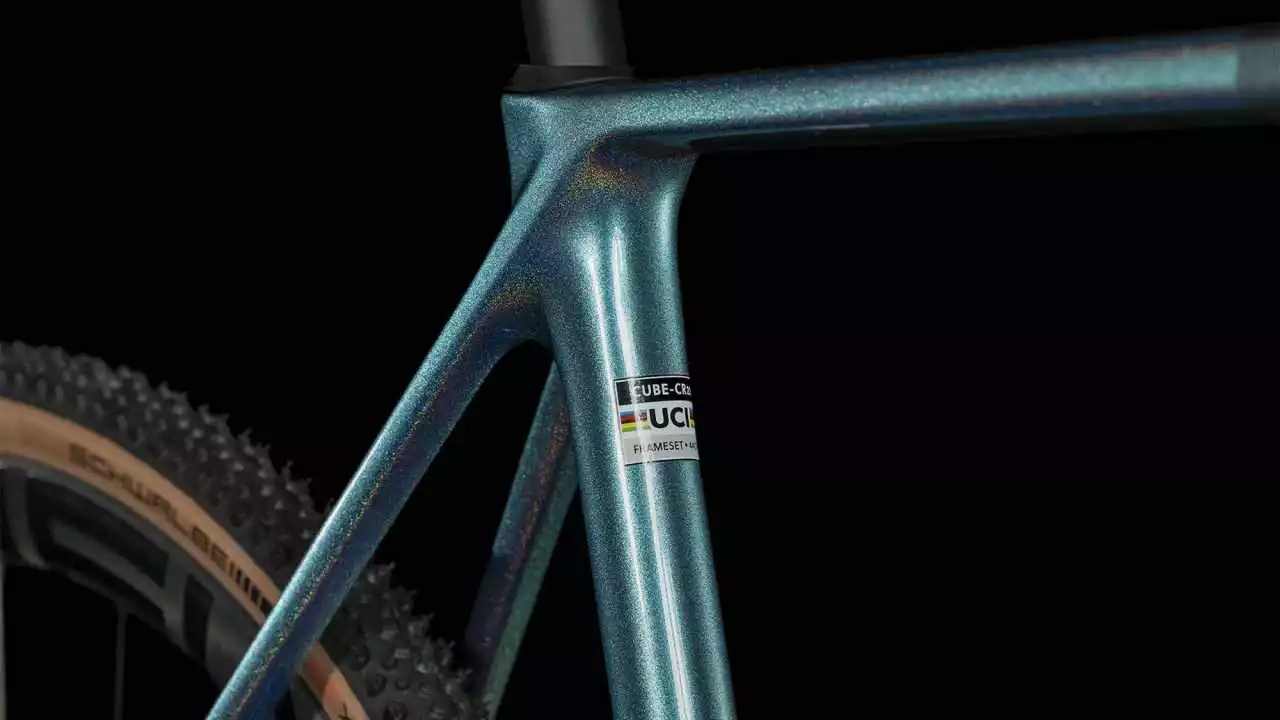 Innovation und Fortschritt kennen bei CUBE keine Grenzen – und der Cross Race C:68X Rahmen ist dafür der beste Beweis. Er wurde in Zusammenarbeit mit dem Wanty Cyclocross-Team entwickelt und orientiert sich an unseren High-End-Carbon-Rennrädern. Das Ergebnis ist eine präzise abgestimmte Konstruktion aus unserem hochwertigen C:68X Carbonmaterial, wodurch das Chassis unter 900 g auf die Waage bringt – 200 g weniger als zuvor. Zugleich ist dieses Fliegengewicht extrem robust und steif und lässt sich ganz einfach packen und schultern. Die integrierte Sattelklemmung, die optionale Di2 Kabelführung und der integrierte Vorbau, bei dem die Züge sauber durch den Steuersatz verlaufen, geben diesem Cyclocross-Kraftpaket den letzten Schliff. Damit ist dir der oberste Platz auf dem Podium so gut wie sicher!