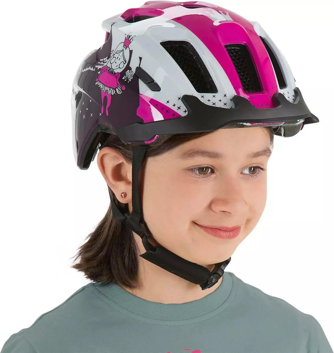 Kinder- und Jugend-Helm, 11 große Belüftungsöffnungen, Insektennetze im Frontbereich, abnehmbares Visier, einhändig bedienbares SNAP 360 Fit System für eine optimale Passform, Double-In-Mould Konstruktion, Flat Divider für die bestmögliche Gurtbandführung, herausnehmbare und waschbare Polster, weitere Polsterstärke erhältlich, X-Lock Befestigungssystem, abnehmbares Rücklicht für aktive Sicherheit, Rastersteckschloss mit Kinnpolster, Natural Fit Konzept, glänzendes Finish