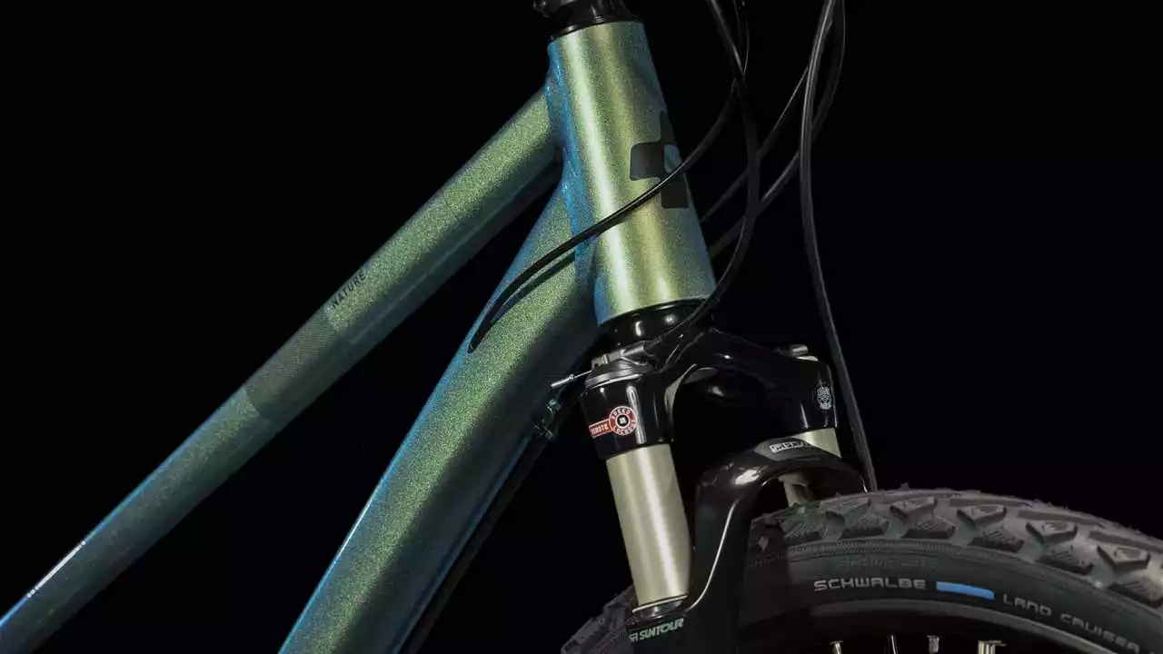 Wirklich hoher Fahrkomfort geht nur mit Federgabel, keine Frage, weshalb wir dem Nature EXC auch eine Luftfedergabel von Suntour spendiert haben. Sie lässt sich ganz einfach und präzise auf das gewünschte Level an Komfort und Kontrolle einstellen. Dazu wechselt die zuverlässige XT und Deore 3×10-Schaltung von Shimano leicht und geschmeidig von Gang zu Gang – so wird jeder Anstieg zum Kinderspiel. Maximale Bremskraft ist das Spezialgebiet der einfach zu bedienenden hydraulischen Shimano Scheibenbremsen, die bei jeder Witterung kräftig zupacken und das Bike kontrolliert anhalten. Jetzt braucht’s nur noch die perfekte nächste Route – und los geht’s!