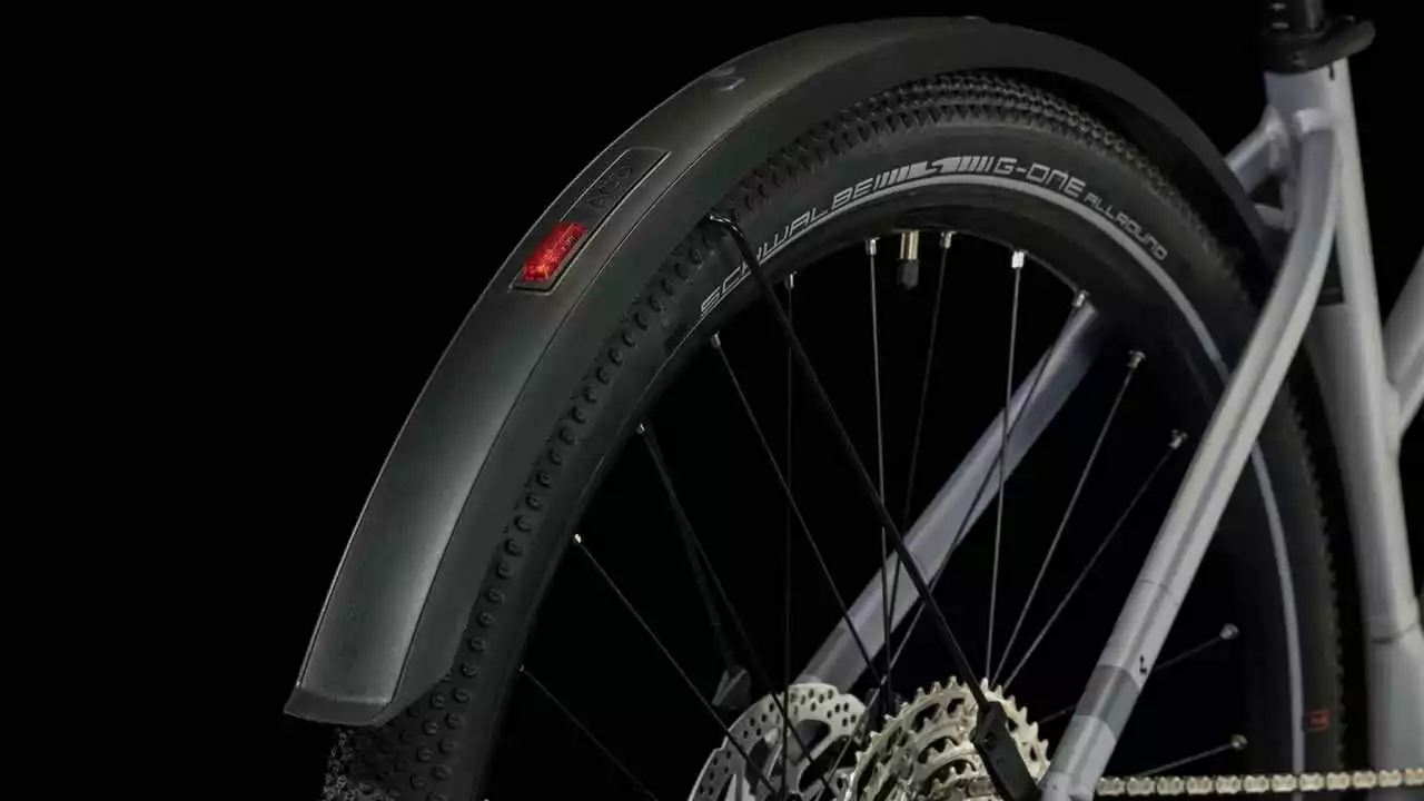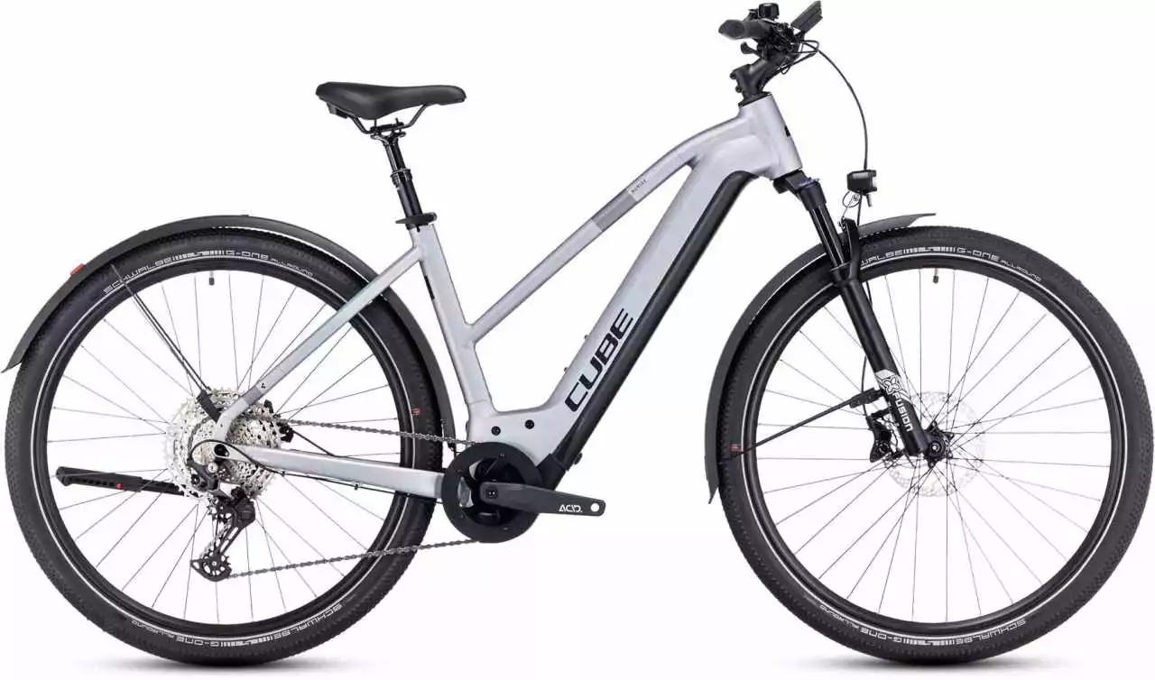 Kompromisse sind nicht so unser Ding hier bei CUBE. Deshalb haben wir das Nuride Hybrid EXC Allroad auch ausschließlich mit extrem zuverlässigen Komponenten bestückt. Eine davon ist der Bosch CX Antrieb der vierten Generation, zwei weitere die Deore 12-fach Schaltung und die leistungsstarken hydraulischen Scheibenbremsen von Shimano. Und weil auf Abenteuertour auch der Fahrkomfort nicht zu kurz kommen darf, haben wir dem Bike griffige Schwalbe Reifen und eine geschmeidig arbeitende Gabel mit 100 mm Federweg spendiert. Übrigens, hier kannst du aus verschiedenen Rahmenformen auswählen – der Tiefeinstieger hat sogar einen verstellbaren Vorbau – und findest garantiert die richtige Passform für dich. Superpraktisch zudem: das umfangreiche Zubehör, bestehend aus Schutzblechen, Lichtern und Seitenständer.