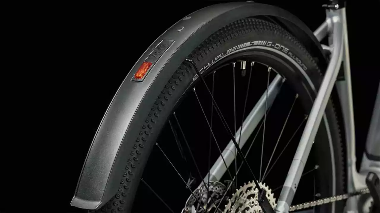 Kompromisse sind nicht so unser Ding hier bei CUBE. Deshalb haben wir das Nuride Hybrid EXC Allroad auch ausschließlich mit extrem zuverlässigen Komponenten bestückt. Eine davon ist der Bosch CX Antrieb der vierten Generation, zwei weitere die Deore 12-fach Schaltung und die leistungsstarken hydraulischen Scheibenbremsen von Shimano. Und weil auf Abenteuertour auch der Fahrkomfort nicht zu kurz kommen darf, haben wir dem Bike griffige Schwalbe Reifen und eine geschmeidig arbeitende Gabel mit 100 mm Federweg spendiert. Übrigens, hier kannst du aus verschiedenen Rahmenformen auswählen – der Tiefeinstieger hat sogar einen verstellbaren Vorbau – und findest garantiert die richtige Passform für dich. Superpraktisch zudem: das umfangreiche Zubehör, bestehend aus Schutzblechen, Lichtern und Seitenständer.