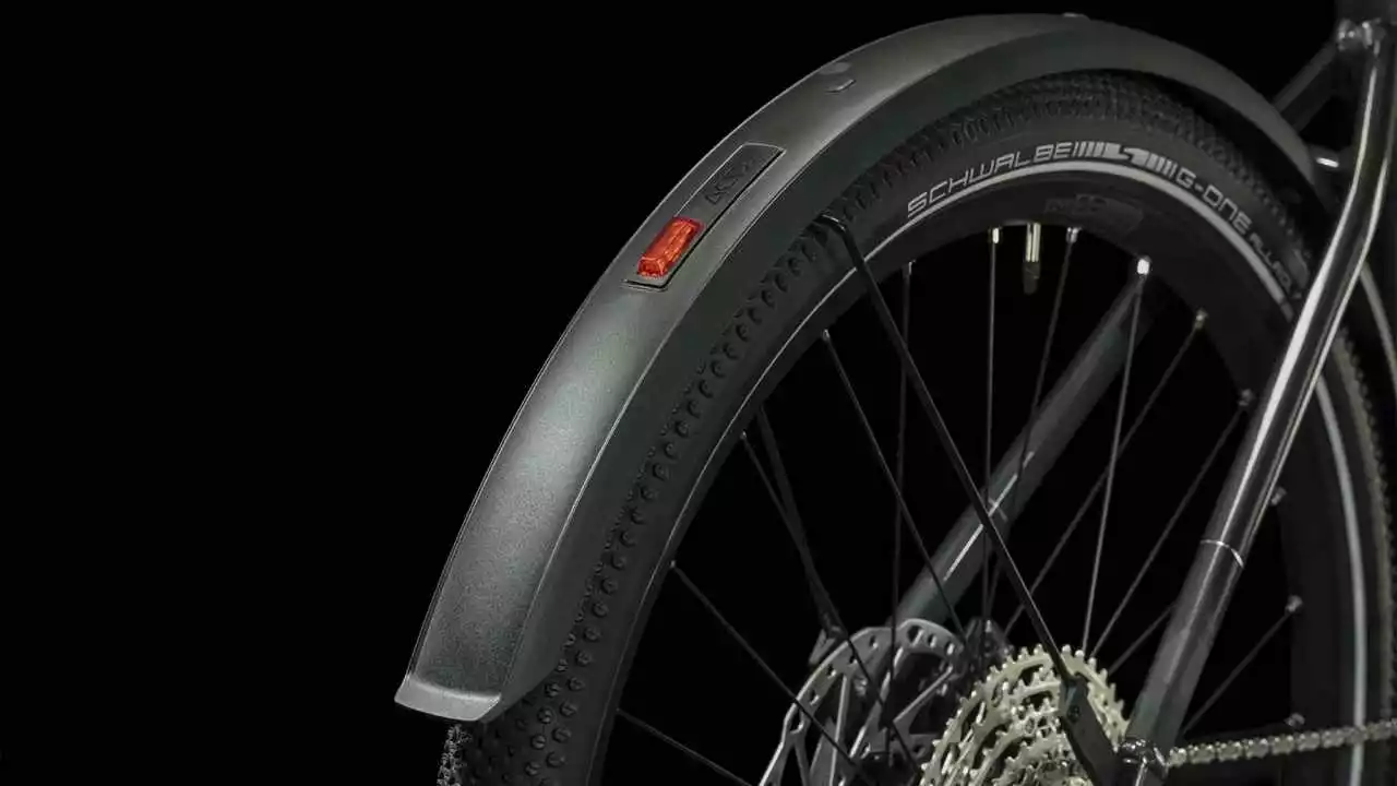 Das Modular Battery System des Nuride Hybrid Pro Allroad wurde im Hinblick auf einfaches Handling, hohen Komfort und ein elegantes Erscheinungsbild konzipiert. Dieses Konzept geht auf: Der Bosch PowerTube Akku verschwindet formschön und dezent im Chassis, egal ob Tiefeinsteiger, Trapezversion oder klassischer Herrenrahmen. Zudem ist es komplett mit dem neuen Smart System von Bosch kompatibel. Damit du für jede Tour und Fahrt optimal gerüstet bist, haben wir dem Bike zudem praktisches Zubehör spendiert: Schutzbleche, eine Lichtanlage und einen Seitenständer. Und die Efficient Comfort Geometry sorgt für einen erwartungsgemäß hohen Fahrkomfort, egal ob in der City oder bei Wochenendausflügen ins Grüne.