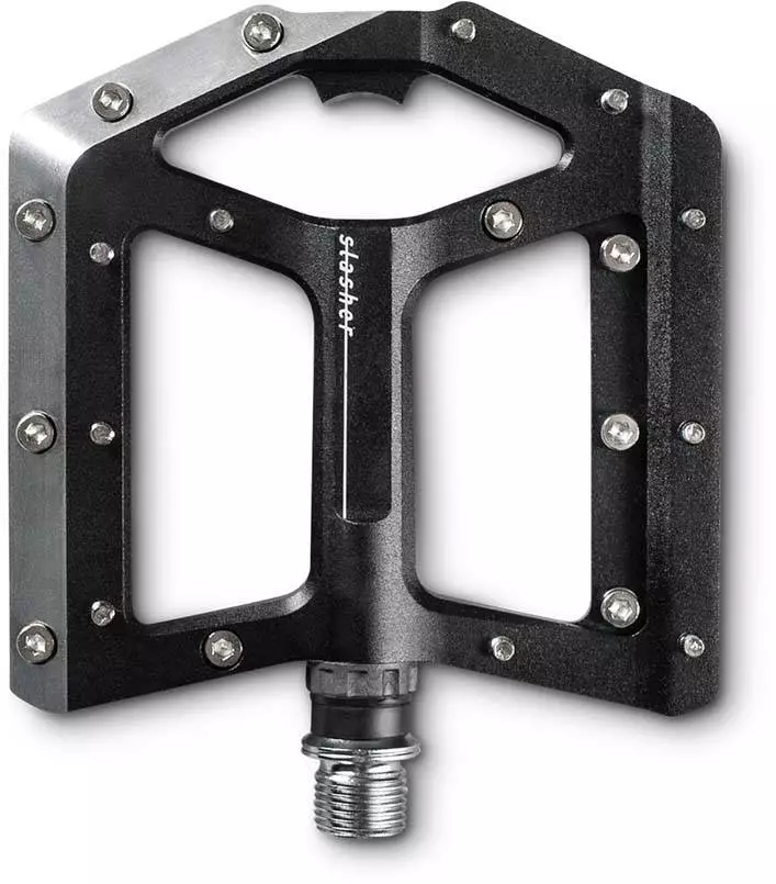 Hier im Bikepark kenne ich jeden Anlieger, jeden Sprung und jede Wurzel. Adrenalin pur! Auf meine Slasher Pedale kann ich mich dabei voll verlassen. Mit ihren einstellbaren Pins und der großen Standfläche fühle ich mich auch im gröbsten Wurzelteppich sicher mit dem Bike verbunden und kann mich doch sofort davon lösen, wenn der Trick mal nicht so klappt wie geplant.