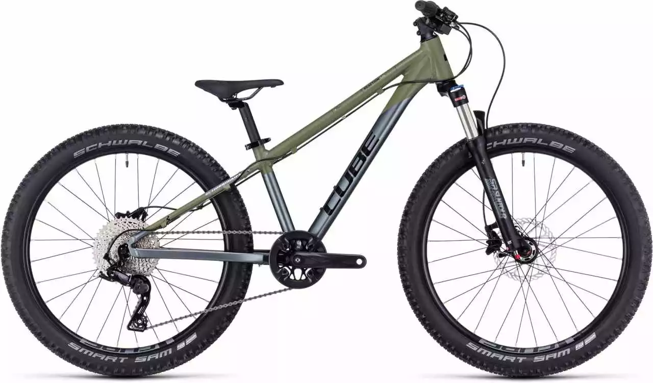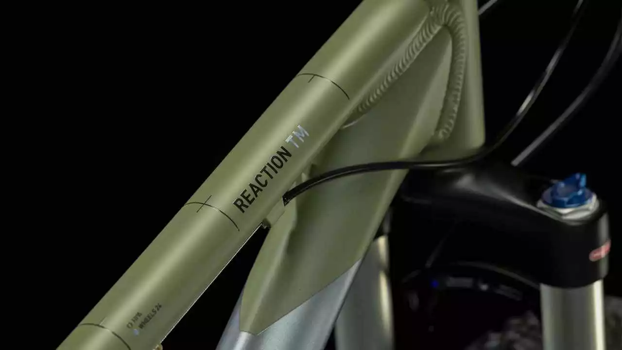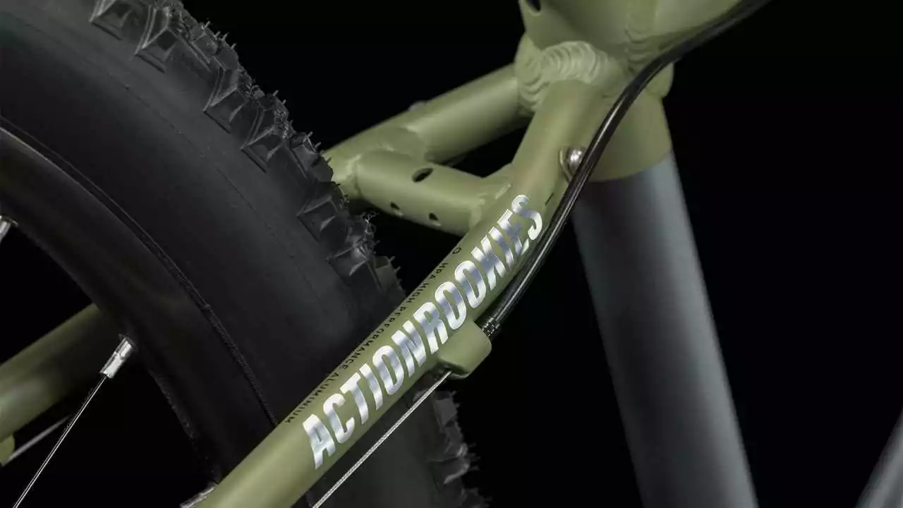 Wir bei CUBE tauchen bei der Entwicklung unserer Produkte stets tief in die Materie ein, deshalb besteht der Reaction 240 TM Rahmen auch aus denselben hitzebehandelten 6061er Aluminiumrohrsätzen wie unsere Performance-Erwachsenenmodelle. Und wir haben deren Form für das optimale Verhältnis von Steifigkeit zu Gewicht mit demselben mechanischen Formverfahren angepasst. Ein weiteres Highlight ist das austauschbare Schaltauge – dadurch müssen die Eltern junger Shredder nach einem kleinen Sturz nicht gleich den ganzen Rahmen kostspielig reparieren lassen. Wer sich noch mehr Grip, Komfort und Sicherheit wünscht, kann das Chassis dank genügend Platz auch mit breiteren Reifen ausrüsten.