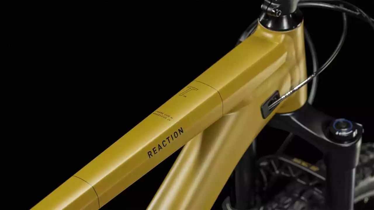 Unser Ziel bei der Entwicklung des Reaction TM war ein pfeilschnelles, leichtes und superrobustes Hardtail, somit steckt in unserem dreifach konifizierten, hydrogeformten Reaction TM Aluminium-Chassis unser gesamtes Know-how in Sachen Rahmenbau. Eine ausgeklügelte Kombination aus Boost Steckachse, komplex geformtem Unterrohr und konisch zulaufendem Steuerrohr sorgt für sensationelle Lenkpräzision, selbst in anspruchsvollem Gelände. Auch an die Extraportion Komfort haben wir gedacht und schlanke Sitzstreben verbaut, damit heißt es: Shredden bis nach Sonnenuntergang! Zudem wurden die Schalt- und Bremszüge ins Innere verlegt, wo sie optimal vor Schlamm und Wasser geschützt sind – für weniger Wartung und keine verpassten Meter auf dem Trail.