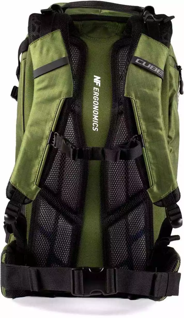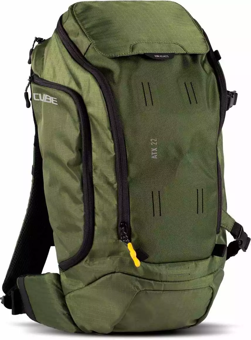 Der CUBE ATX 22 TM bietet Platz für alles, was auf ausgedehnten Touren mitmuss. Dank dem von CUBE entwickelten Natural Fit Rückensystem und gepolsterten Hüftgurt sitzt der Rucksack optimal am Rücken. Das Gewicht wird angenehm verteilt, der Rücken ist gut polstert und belüftet. Dank MOLLE-System lässt sich auch die CUBE GEAR BAG 1 mit Klettbändern sicher am Rucksack fixieren. Mit den seitlich angebrachten Kompressionsriemen hast du zusätzlich die Möglichkeit, deine Jacke oder Protektoren zu befestigen. Dank sinnvoller Fächeraufteilung, extra Werkzeugfach und Smartphone-Seitenfach sind die wichtigsten Sachen schnell griffbereit. Plus Raincover und Trinkblasenfach … am Rucksack wird die Tour nicht scheitern.