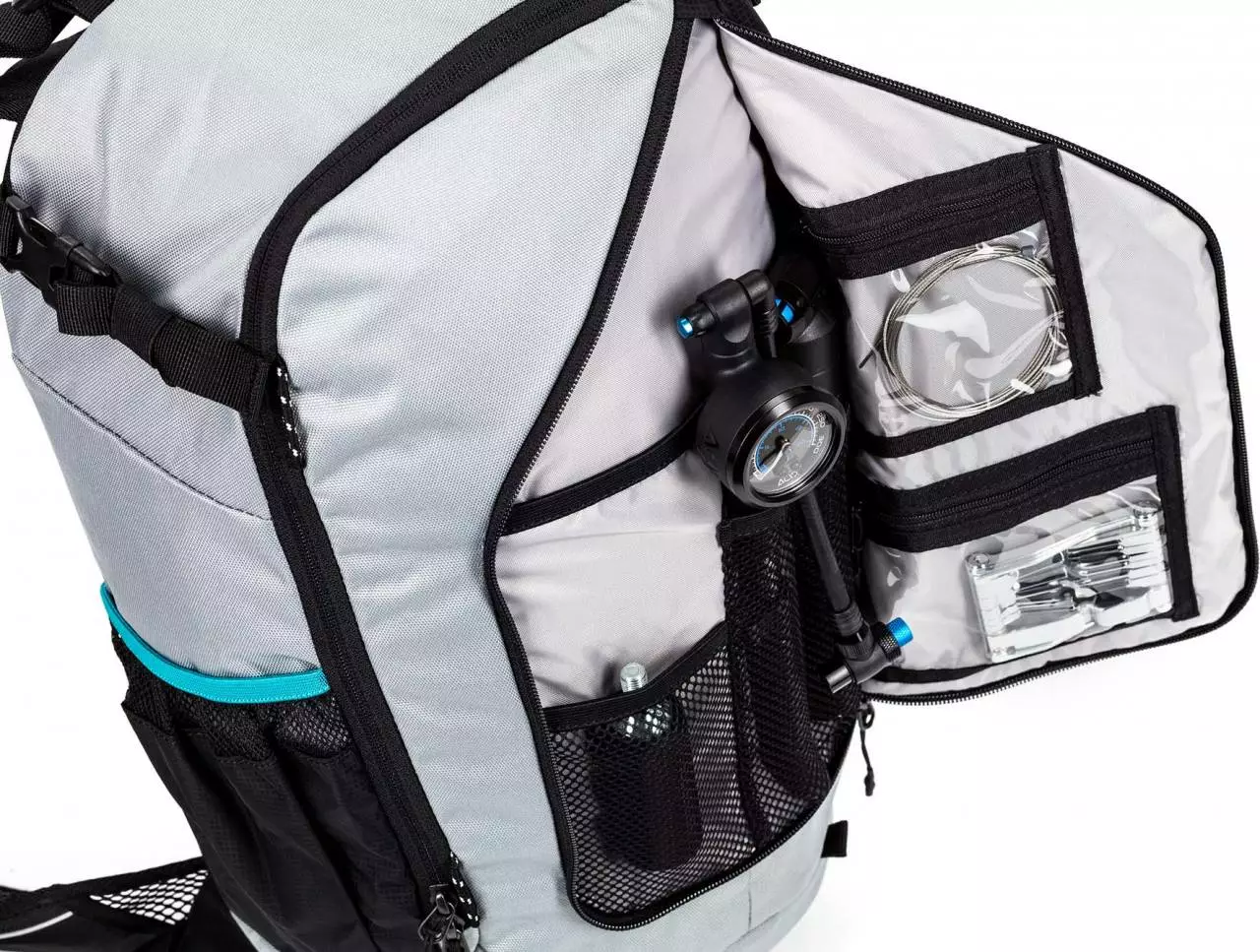 trinkblasenkompatibel, Zippertasche im Hauptfach, Werkzeugfach in der front flap, Kompressionsriemen, Helmhalterung, Protektorenhalterung, Rückenprotektor-kombatibel (SAS-Tec SCA 450), Easy-Access Seitenfach für Smartphone/Trailkarte, Hüftgurttaschen, Natural Fit Rückensystem