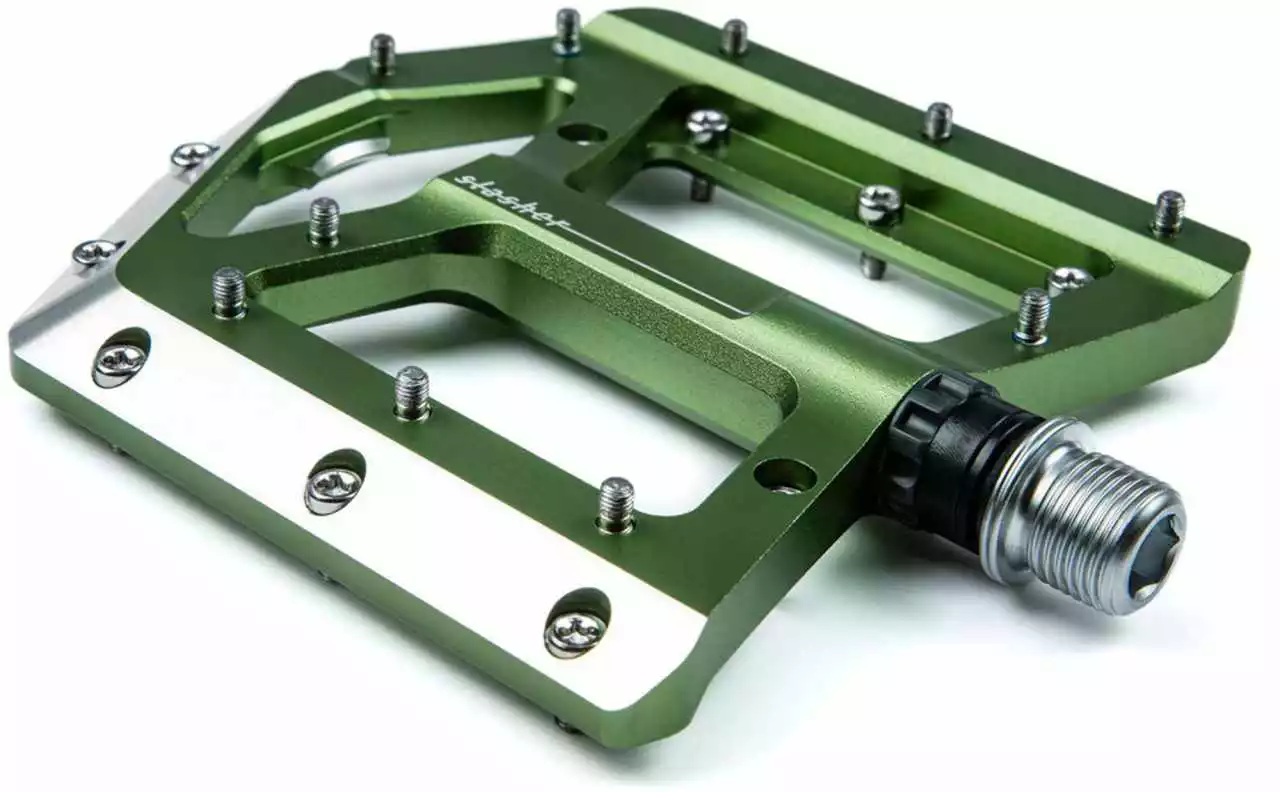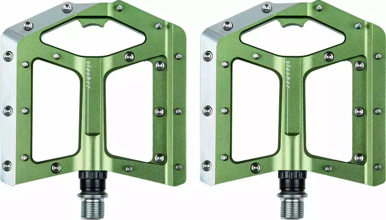 Slasher Pedale von CUBE – Der Blickfang an jedem Bike. Mit dem integriertem Flaschenöffner ist das neu designte und leichte Flat Pedal fraglos das Highlight auf und nach jeder Tour. Das Slasher hat aber noch weit mehr zu bieten. Das ultraflache Profil sorgt für weniger Gewicht und durch angefaste Kanten für mehr Bodenfreiheit in den Kurven. Der dreifach gelagerte Aluminiumkörper des Flat Pedals überzeugt mit einer aufwendigen two- tone CNC Bearbeitung und 10 austauschbaren Pins pro Seite.