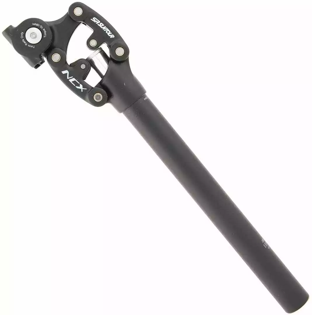 Die Weiterentwicklung der beliebten Suntour SP8. Lässt sich auf und ab sowie auch vor und zurückbewegen. Mit einer überarbeiteten Lagerung und Einsatz von hochwertigen Messingbuchsen wird das Seitenspiel minimiert, 995g