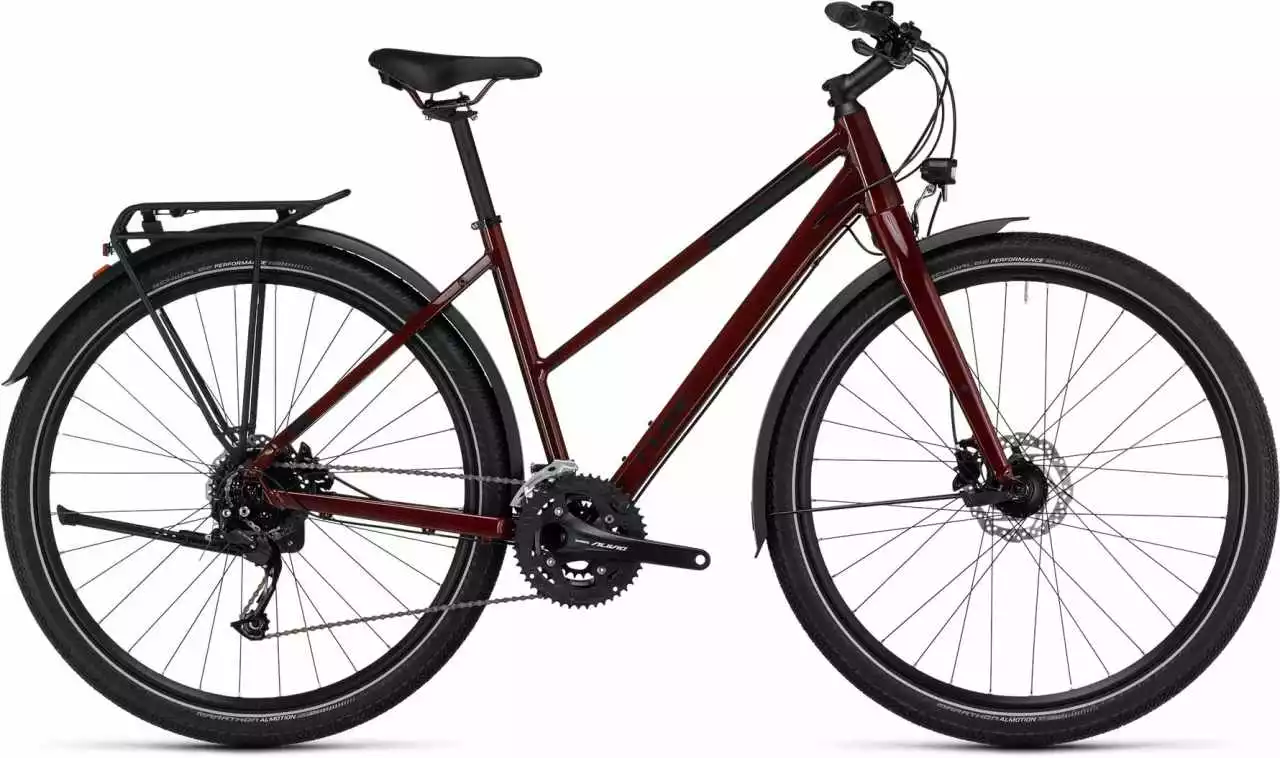 Wer sich für ein CUBE Travel entscheidet, bucht das Abenteuer gleich mit. Warum? Weil dieses Bike alles mitbringt, was dich auf deiner Tour optimal unterstützt: semi-integrierter Gepäckträger, Schutzbleche, Seitenständer und eine per Dynamo am Vorderrad betriebene Lichtanlage. Und mit der einfach bedienbaren, breit gefächerten Shimano Alivio 3×9-Gang Schaltung wechselst du unterwegs spielend leicht von Gang zu Gang und meisterst jede Route und jeden Anstieg souverän. Wetterunabhängig sicheres Bremsen ist das Spezialgebiet der leistungsstarken hydraulischen Scheibenbremsen – ebenfalls von Shimano. Stellt sich sogleich die Frage, wo der nächste Trip hingeht?