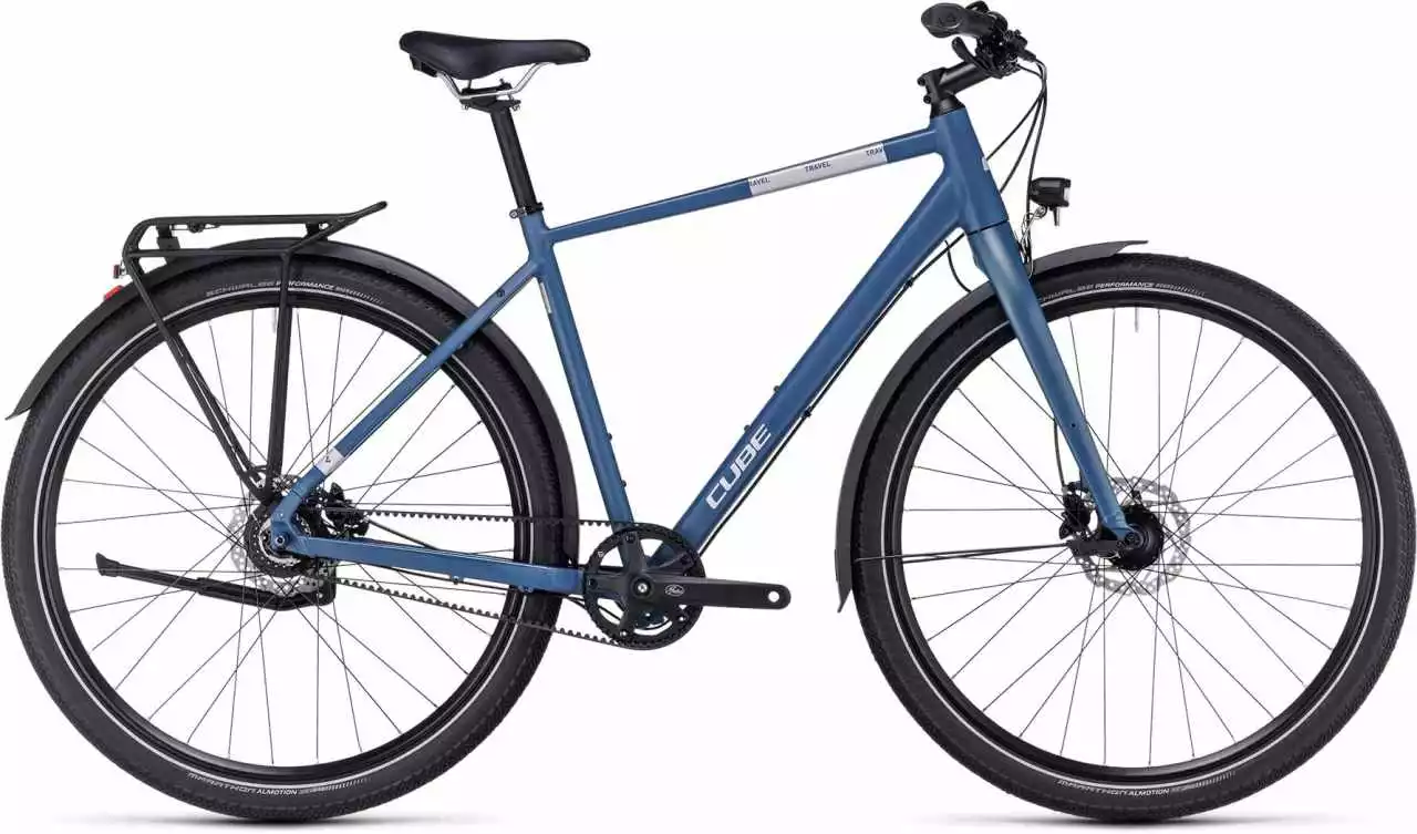 Fakt ist, unsere funktionellen, robusten Bikes bringen genauso viel Spaß wie unsere Vollblüter. Ein Beispiel ist das Travel Pro. Mit einer 8-Gang Nabenschaltung und einem Gates Zahnriemen fährt es sich so leicht, sauber und geräuscharm, dass es eine wahre Freude ist. Pluspunkte in Sachen Sicherheit und Kontrolle bei jedem Wetter sammelt es mit kraftvoll zupackenden hydraulischen Shimano Scheibenbremsen, griffigen 29 Zoll Schwalbe Laufrädern und Schutzblechen. Für top Vielseitigkeit für alle möglichen Touren und Ausfahrten zeichnen der semi-integrierte Gepäckträger, ein Seitenständer und die dynamobetriebene Lichtanlage verantwortlich.