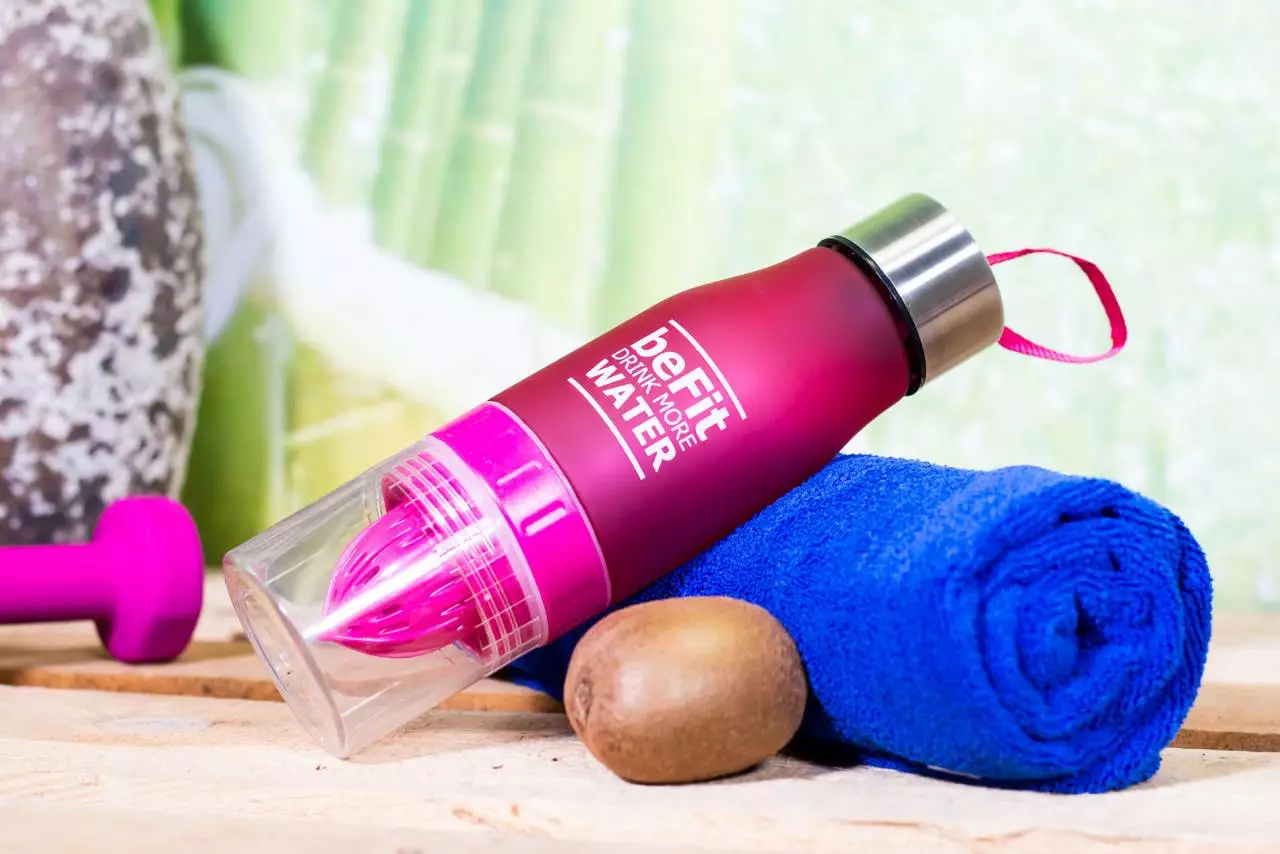 Trinkflasche mit integrierter Fruchtpresse