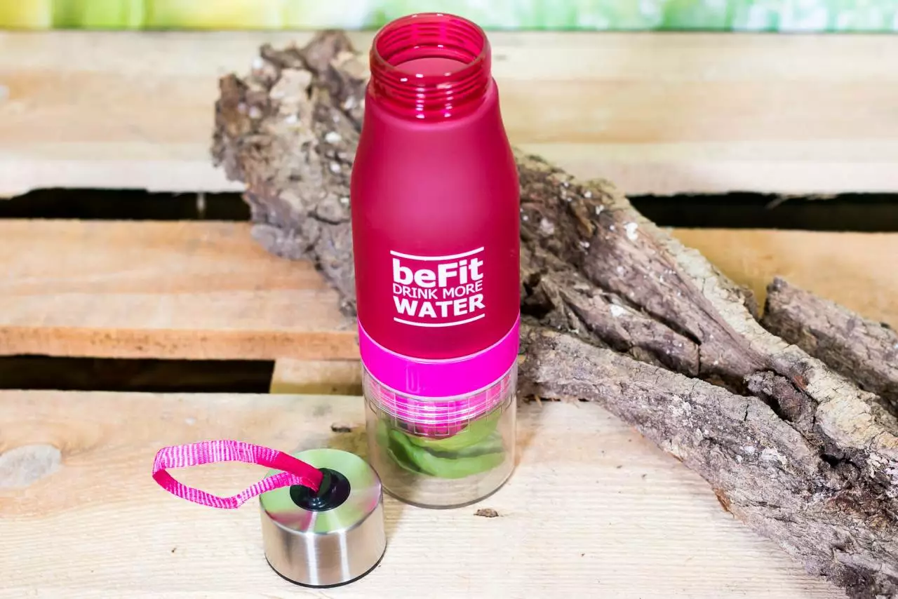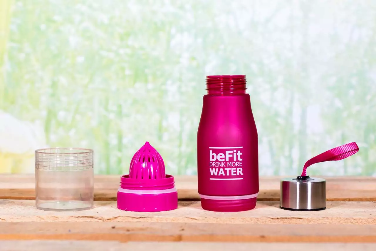 Diese tolle Trinkflasche darf bei keinem Sportler fehlen. Frisches Wasser und frisches Obst. Mehr benötigen Sie nicht, um Ihren eigenen Fruchtsaft herzustellen, ohne fremde Zusatzstoffe.