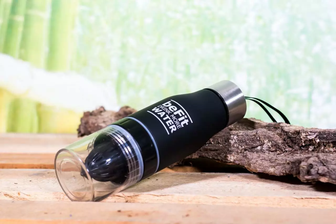 Diese tolle Trinkflasche darf bei keinem Sportler fehlen. Frisches Wasser und frisches Obst. Mehr benötigen Sie nicht, um Ihren eigenen Fruchtsaft herzustellen, ohne fremde Zusatzstoffe.