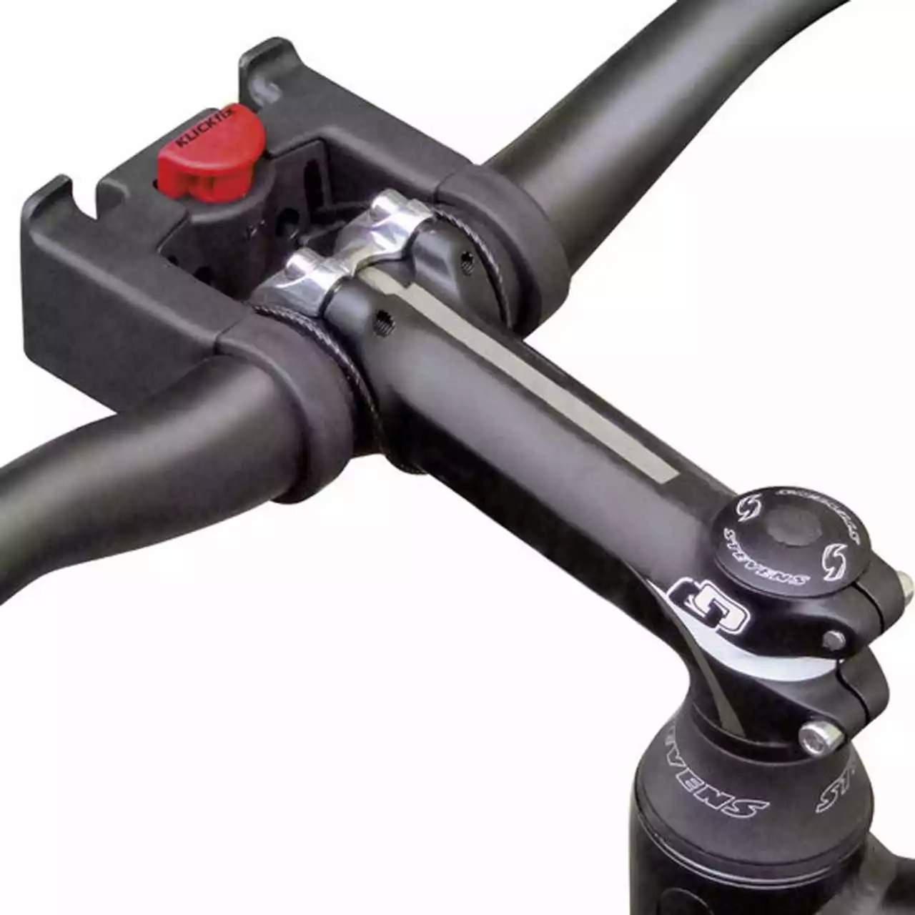 Auch bei schwerem Zubehör sitzt der Adapter durch die patentierte Seilabspannung absolut verdrehsicher und fest am Lenker.