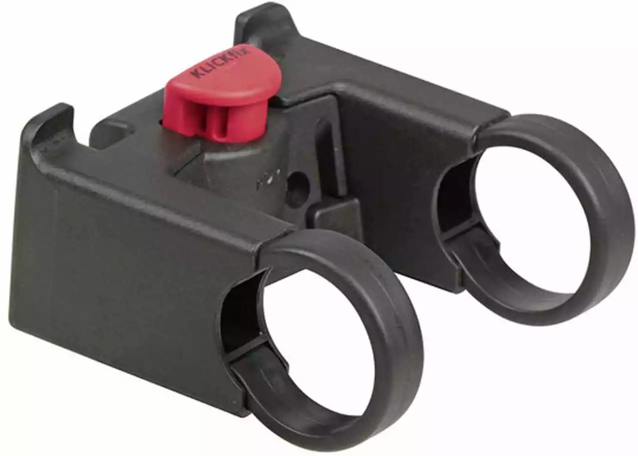 Ob Tasche, Korb oder Kartenhalter. An den robusten, glasfaserverstärkten Lenkeradapter hat man schnell die passende Ausrüstung geklickt. Durch Druck auf die rote Taste kann das Zubehör bequem wieder vom Rad gelöst werden. Der Adapter lässt sich an die unterschiedlichen Bedingungen am Rad anpassen. Verschiedene Distanzstücke, Montagesockel und Schellengrößen, ermöglichen die Montage an fast allen Rädern. Mit Oversize Schellen für Lenker Ø 31,8 mm enthalten.