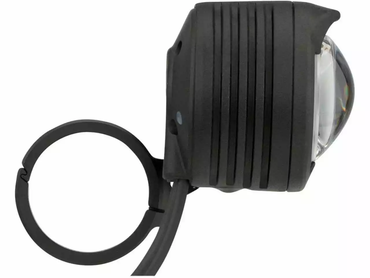Das Lupine SL SF Bosch LED Frontlicht mit StVZO-Zulassung ist geeignet für E-Bikes mit Purion und Kiox Displays. Das Tagfahrlicht sorgt für bessere Sichtbarkeit tagsüber, wenn es zwar hell genug, aber trotzdem trübe ist. Die in Stufen einstellbare Stereo-Sensorik schaltet bei Einsetzen der Dämmerung automatisch auf das Abblendlicht. Dieses wurde nach Vorbild von Autoscheinwerfern entworfen und ist für entgegenkommende Verkehrsteilnehmer absolut blendfrei. Gleichzeitig wird die Fernlicht-Funktion freigegeben. Mit dieser entfesselst Du 1300 Lumen und lässt sie auf den Weg vor Dir los: Nicht einfach nur ein stärkeres Abblendlicht, sondern ein ganz anderes Leuchtbild erhellt zusätzliche Bereiche vor Dir weit oberhalb der blendfreien Hell-Dunkel Grenze. Damit meisterst Du sicher auch schnelle Fahrten und anspruchsvolle Trails. Mit der kabelgebundenen Fernbedienung blendest Du in Sekundenschnelle auf und ab. Wenn Dir jemand entgegenkommt, solltest Du abblenden, um denjenigen nicht zu blenden. Zur Kontrolle leuchtet das Symbol des Tasters grün oder blau, je nachdem, ob das Fernlicht gerade eingeschaltet ist oder nicht. Du steuerst das Frontlicht mit der Fernbedienung oder der Steuerung Deines E-Bikes. Auf der Unterseite des Lampenkopfes befindet sich darüber hinaus ein zusätzlicher Taster, mit dem das Licht ein- oder ausgeschaltet werden kann. 18 Osram Compact CL Automotive LEDs und das weltweit erste Dual Aspheric Lens System für Fahrradlampen bilden das Herzstück des Frontlichts. Das Linsen-Material wird auch in der Luftfahrt und Medizintechnik verwendet und ist extrem witterungsbeständig. Der robuste und hochwertige Aluminiumkörper schützt die Lampe zuverlässig vor Stößen, Staub und Wasser.