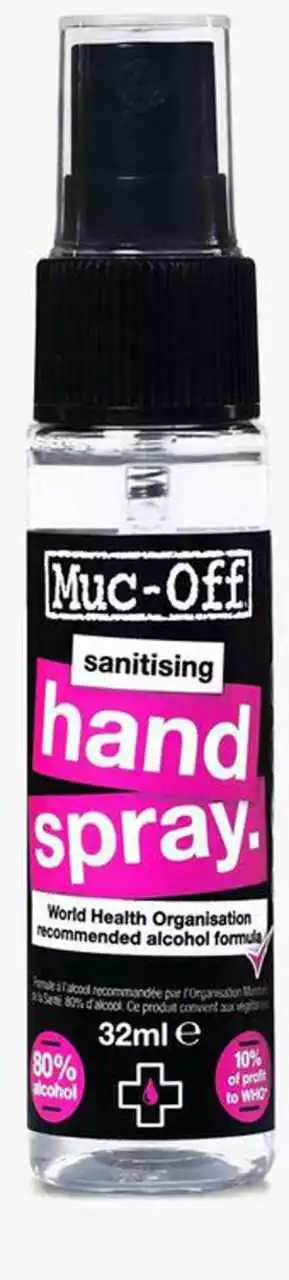 Desinfizieren Sie Ihre Hände, wo immer Sie sind, mit dem antibakteriellen Handspray (32 ml) von Muc-Off. Es tötet 99,99% der Keime ab und enthält 80% Alkohol in einer wasserverdünnten Formel