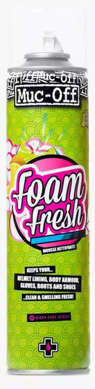 Muc-Off Foam Fresh ist ein hochwirksamer, einfach zu handhabender Schaumreiniger, der sich ideal für Helminnenfutter oder andere weiche Materialien eignet, die mit dem Fahrer in Kontakt kommen. Foam Fresh hat eine sofortige schäumende Wirkung, die Schmutz und Dreck sanft von der Oberfläche entfernt und dabei einen frischen Zitrusduft hinterlässt. Selbst die sauberste Reitausrüstung profitiert von diesem einzigartig formulierten Produkt. Es eignet sich hervorragend zur Verwendung auf Polstern, Handschuhen, Schuhen, Innenschuhen und Schutzwesten.
