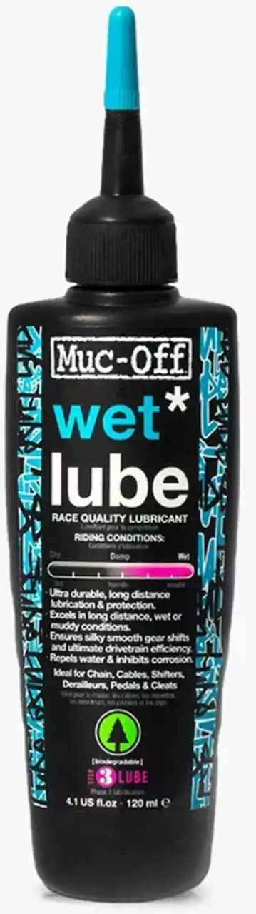 Muc-Off Wet Chain Lube ist ein extrem haltbares Fahrradkettenschmiermittel und -öl für lange Strecken, das speziell entwickelt wurde, um auf langen Strecken bei nassen oder schlammigen Bedingungen zu bestehen. Unsere hochmoderne Formel wurde aus natürlichen Inhaltsstoffen abgeleitet und vollständig aus erneuerbaren Quellen hergestellt.