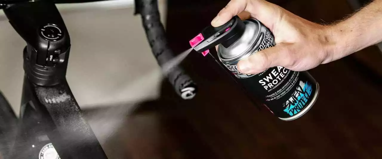 - Dose kräftig schütteln. Nach dem Waschen der Oberfläche mit Muc-Off Equipment Cleaner Sweat Protect auf die zu schützende Oberfläche auftragen, um die Restfeuchtigkeit zu verteilen.