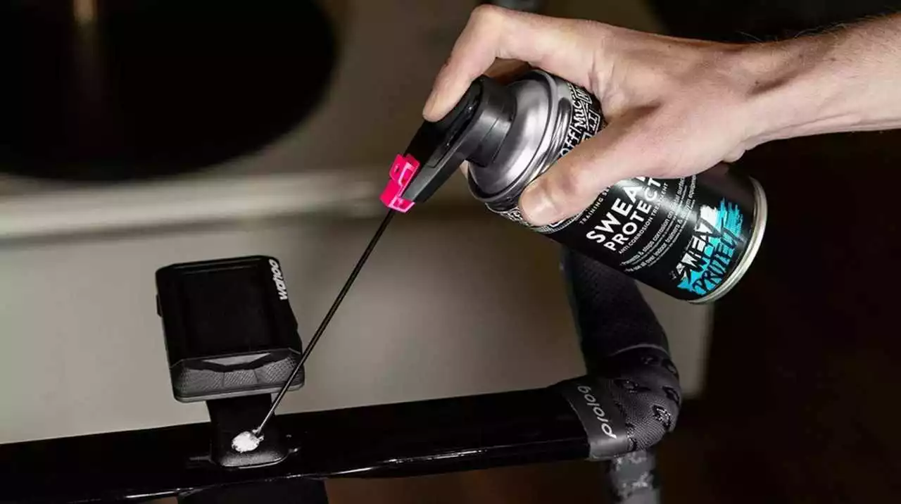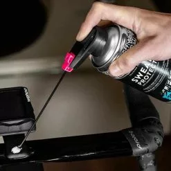 Es verdrängt Feuchtigkeit und hinterlässt eine schützende Korrosionsschutzschicht auf dem Rahmen, den Metallteilen und der Lackierung Ihres Fahrrads, um die schädlichen Auswirkungen von Feuchtigkeit und Schweiß in Schach zu halten.