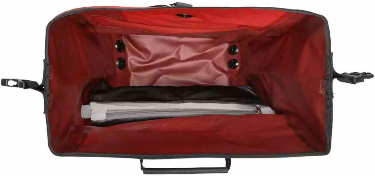 Das schwarze Shirt oder das blaue? Zwei Paar Schuhe oder drei? Du kannst dich nicht entscheiden? Musst du auch nicht. Die größten wasserdichten Fahrradtaschen der Welt haben genug Platz für alles, was dir wichtig ist. Der Back-Roller Pro Plus ist die XL-Version der beliebten Tourentasche Back-Roller Plus und bietet mit 70 Liter pro Paar fast doppelt so viel Stauraum. Er ist außerdem der erste ORTLIEB Back-Roller mit zusätzlicher Fronttasche. Diese ist zwar nicht wasserdicht, aber mit zusätzlichen 4 Liter Fassungsvermögen pro Tasche ungemein praktisch, z. B. für Wasserflaschen, Sonnenmilch oder nasse Sachen.