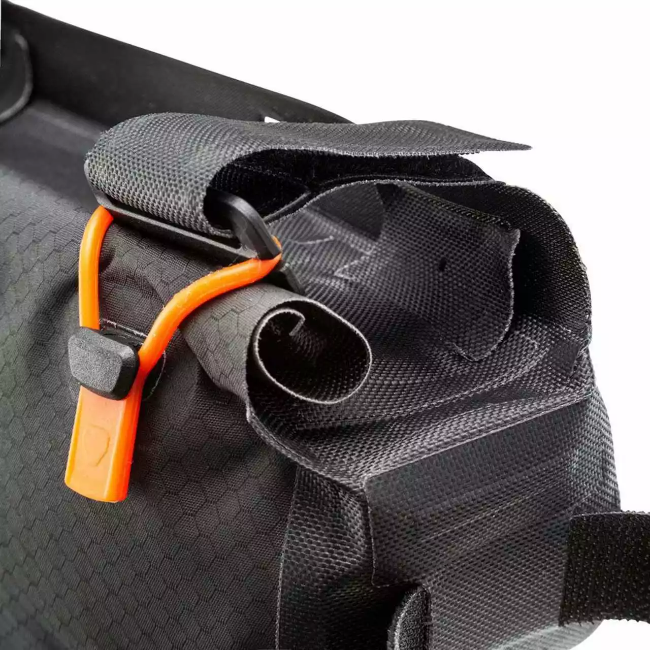 Die Rahmentasche Frame-Pack RC 6L mit Rollverschluss von ORTLIEB für das Bike-Packing hilft immer gut gerüstet in das nächste Abenteuer zu starten. Dank des wasserdichten Rollverschlusses, der über drei Silikonringe verschlossen wird, in Verbindung mit dem bewährten Nylongewebe bleiabt das Gepäck im Tascheninneren auch bei widrigsten Bedingungen absolut trocken. Das Frame-Pack RC 6L eignet sich ideal, um vor allem schweres Gepäck, wie etwa Werkzeug oder Nahrungsvorräte, zentral im Rad zu verstauen. Dadurch bleibt ein tiefer Schwerpunkt erhalten und der Trailspaß auch bei voller Beladung unverändert hoch. Der Rollverschluss und die damit verbundene große Öffnung ermöglichen den leichten Zugriff auf das gesamte Tascheninnere und das unkomplizierte Bepacken der Tasche. Die Montage innerhalb des Rahmendreiecks erfolgt über haftstarke und robuste Klettverschlüsse. Die spezifische Positionierung der Klettbänder entlang des Taschenumfangs ermöglicht eine individuelle Abstimmung auf die Gegebenheiten des Bikes. Das Frame-Pack RC 6L ist geeignet für die Montage an Carbon-Rahmen, ist PVC-frei und wird nachhaltig in Deutschland hergestellt.