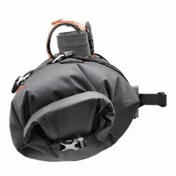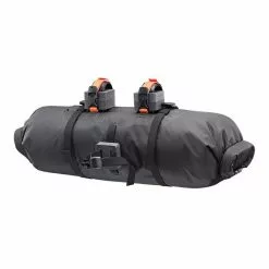 Die beidseitigen Rollverschlüsse ermöglichen den Zugriff auf den Inhalt, sorgen aber auch dafür, dass alles Wichtige im Handlebar-Pack 15L jederzeit trocken und sauber verwahrt ist. Die Verteilung des Gepäcks und damit auch der Lasten am Rad ist durch die Gepäckrolle problemlos möglich, so können der Schlafsack und die Isomatte als leichtes aber auch großvolumiges Gepäck gut in der kleinen Lenkerrolle verstaut werden. Das Pack hat einen Durchmesser von 20 cm und bietet fünfzehn Liter Volumen. Durch die geringe Breite gibt es keine Einschränkung, was die Wahl des Griffes am Lenker angeht.