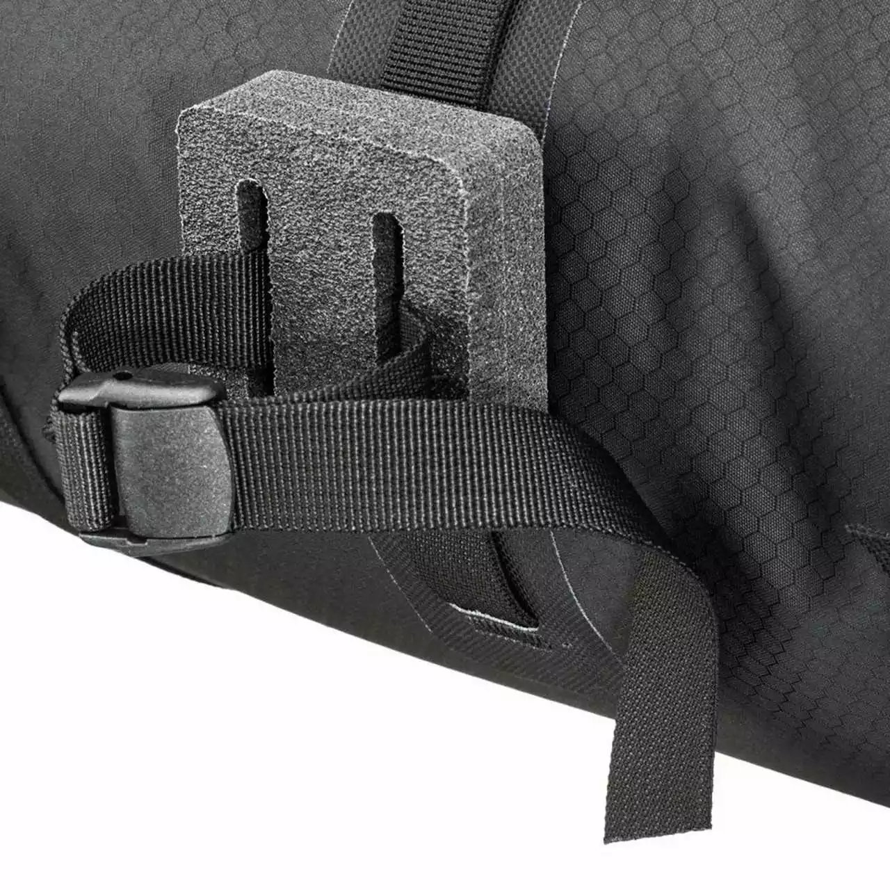 Distanzstücke sowie zwei Gurtbänder dienen der sicheren Fixierung an verschiedenen Lenkertypen. Zudem helfen eine Kunststoffversteifung im Inneren des Handlebar-Packs und eine Fixierung am Steuerrohr für die notwendige Stabilität. Gurtbänder mit Klettverschluss dienen als Montagehilfe.