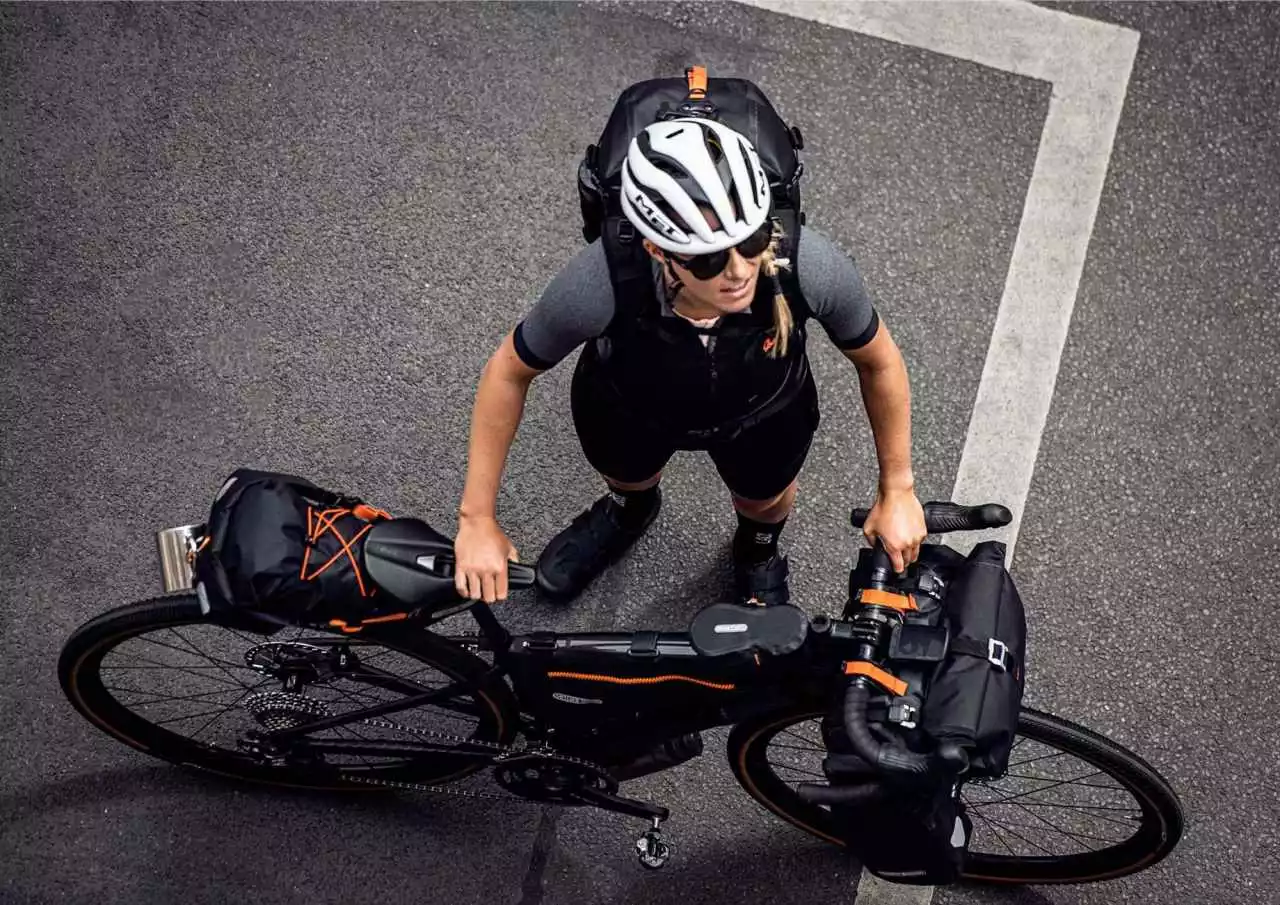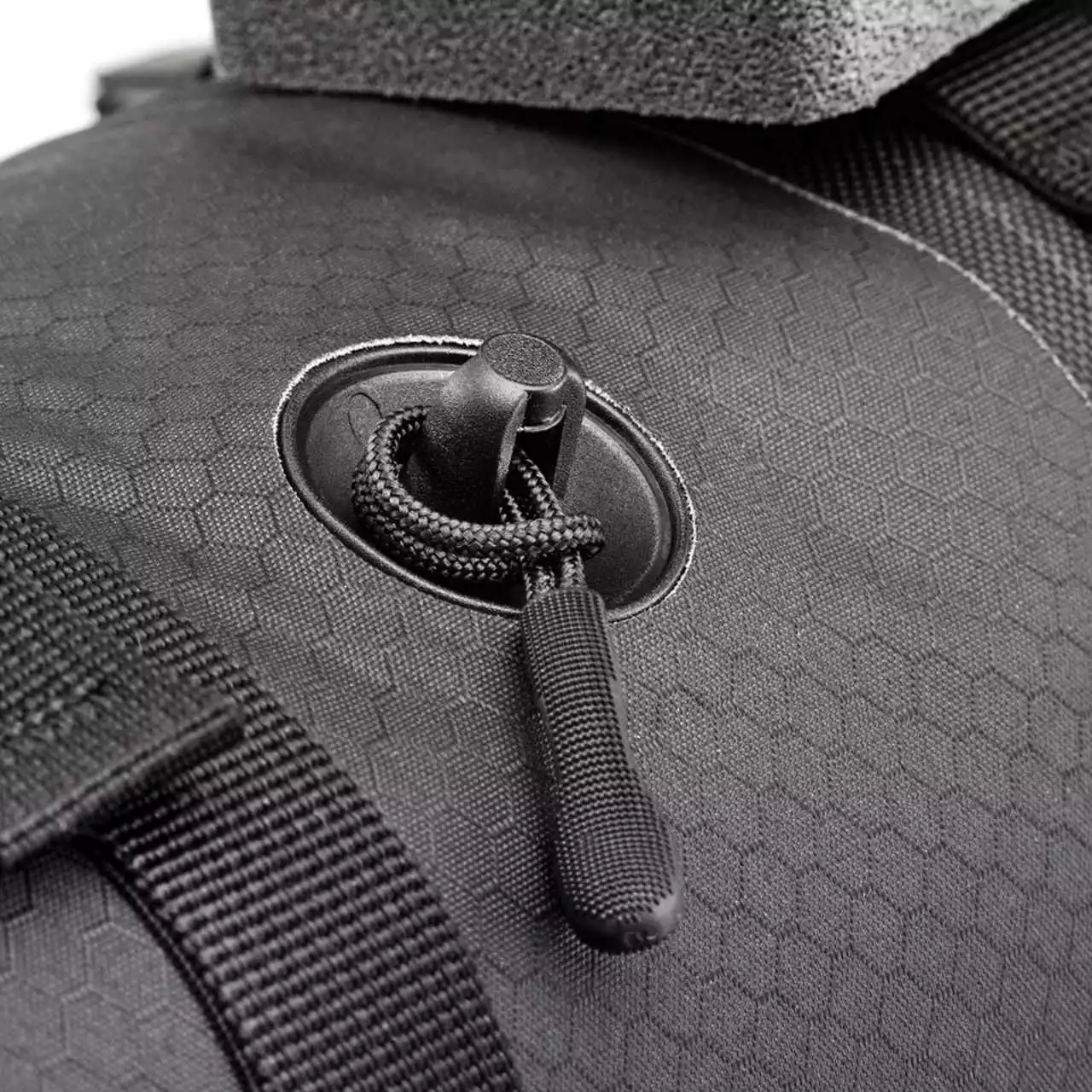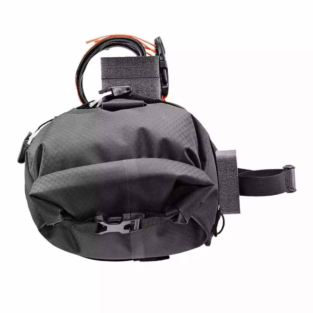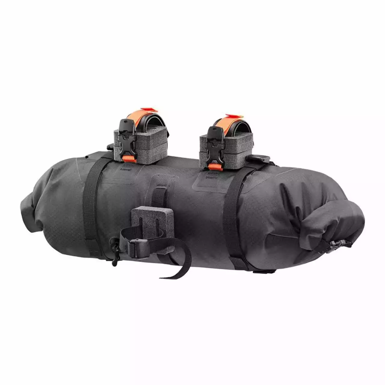 Die beidseitigen Rollverschlüsse ermöglichen den Zugriff auf den Inhalt, sorgen aber auch dafür, dass alles Wichtige im Handlebar-Pack 9L jederzeit trocken und sauber verwahrt ist. Die Verteilung des Gepäcks und damit auch der Lasten am Rad ist durch die Gepäckrolle problemlos möglich, so können der Schlafsack und die Isomatte als leichtes aber auch großvolumiges Gepäck gut in der kleinen Lenkerrolle verstaut werden. Durch die geringe Breite gibt es keine Einschränkung, was die Wahl des Griffes am Lenker angeht.