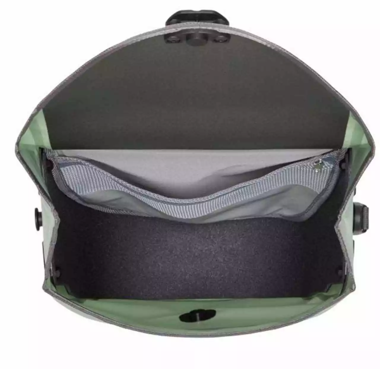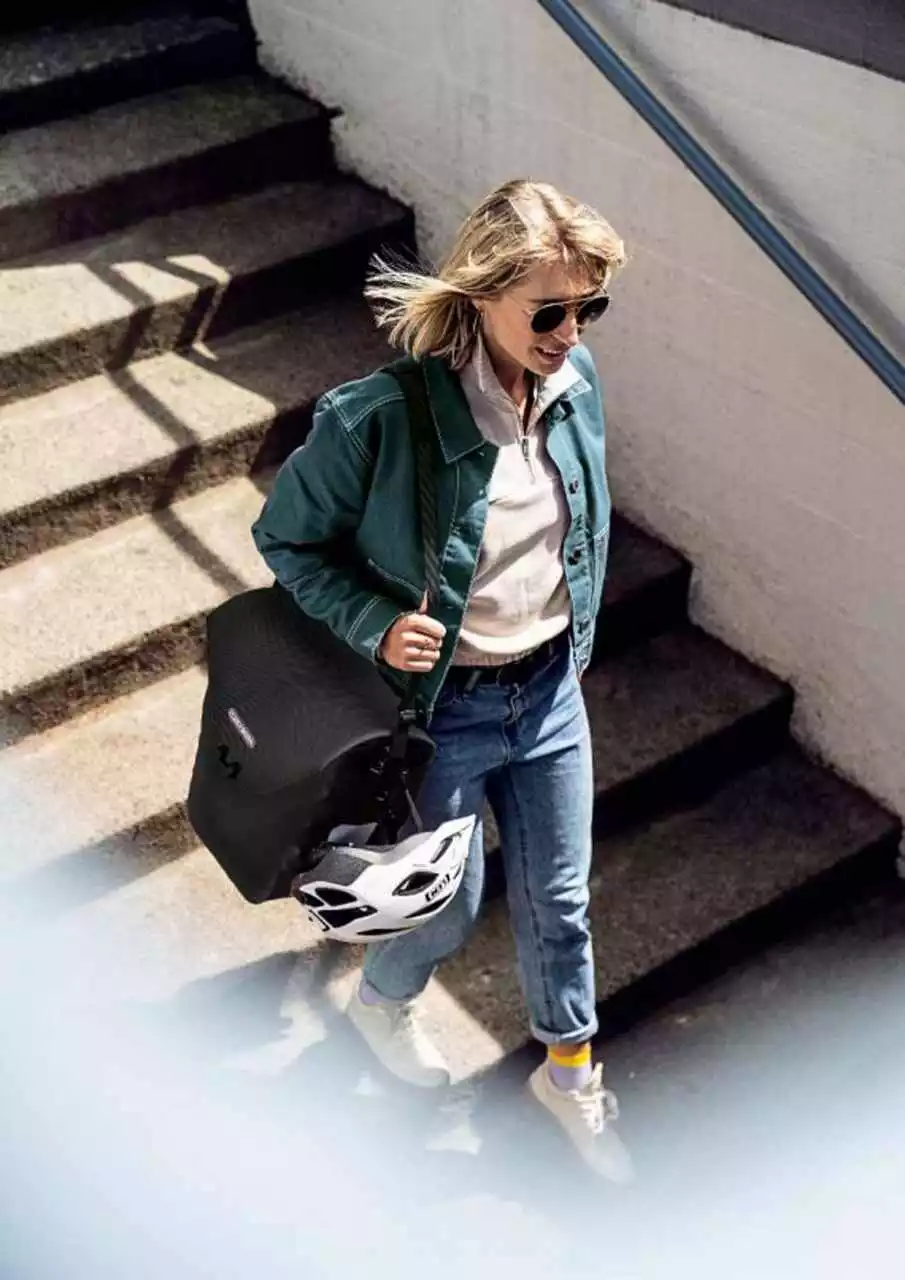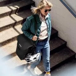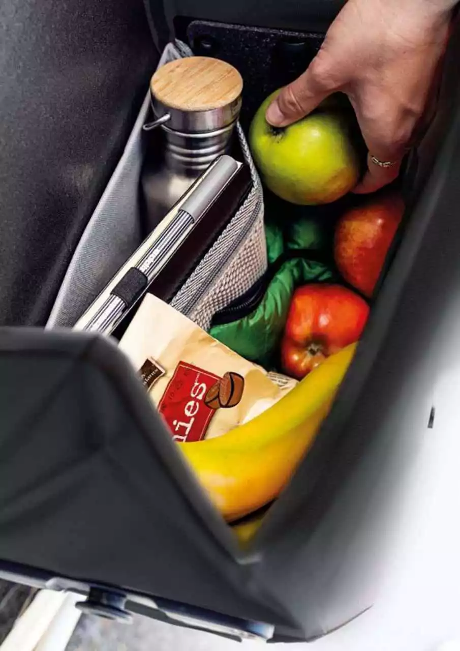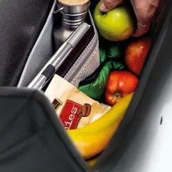 Fährst du auch gerne mit dem Rad einkaufen? Kein Stau, kein Parkplatzsuchen, dafür hast du Bewegung und verbrauchst viele Kalorien, die du später beim Essen nicht zählen musst … Egal, ob abends schnell zum Supermarkt oder samstags zum Wochenmarkt – der Velo-Shopper hat eine große Klappe und 18 L Fassungsvermögen – da passt ordentlich was rein! Besonders praktisch ist der magnetische Schnappverschluss-Deckel, den du mit einer Hand öffnen und schließen kannst. Der Shopper aus wasserdichtem, abriebfestem Nylongewebe lässt sich mit dem bewährten Quick-Lock2.1-System am Gepäckträger fixieren. Jenseits des Fahrrads kannst du ihn dir mit dem abnehmbaren Tragegurt einfach über die Schulter hängen. Durch die Innenversteifung sind deine Einkäufe auch bei prall gefüllter Tasche immer gut geschützt.