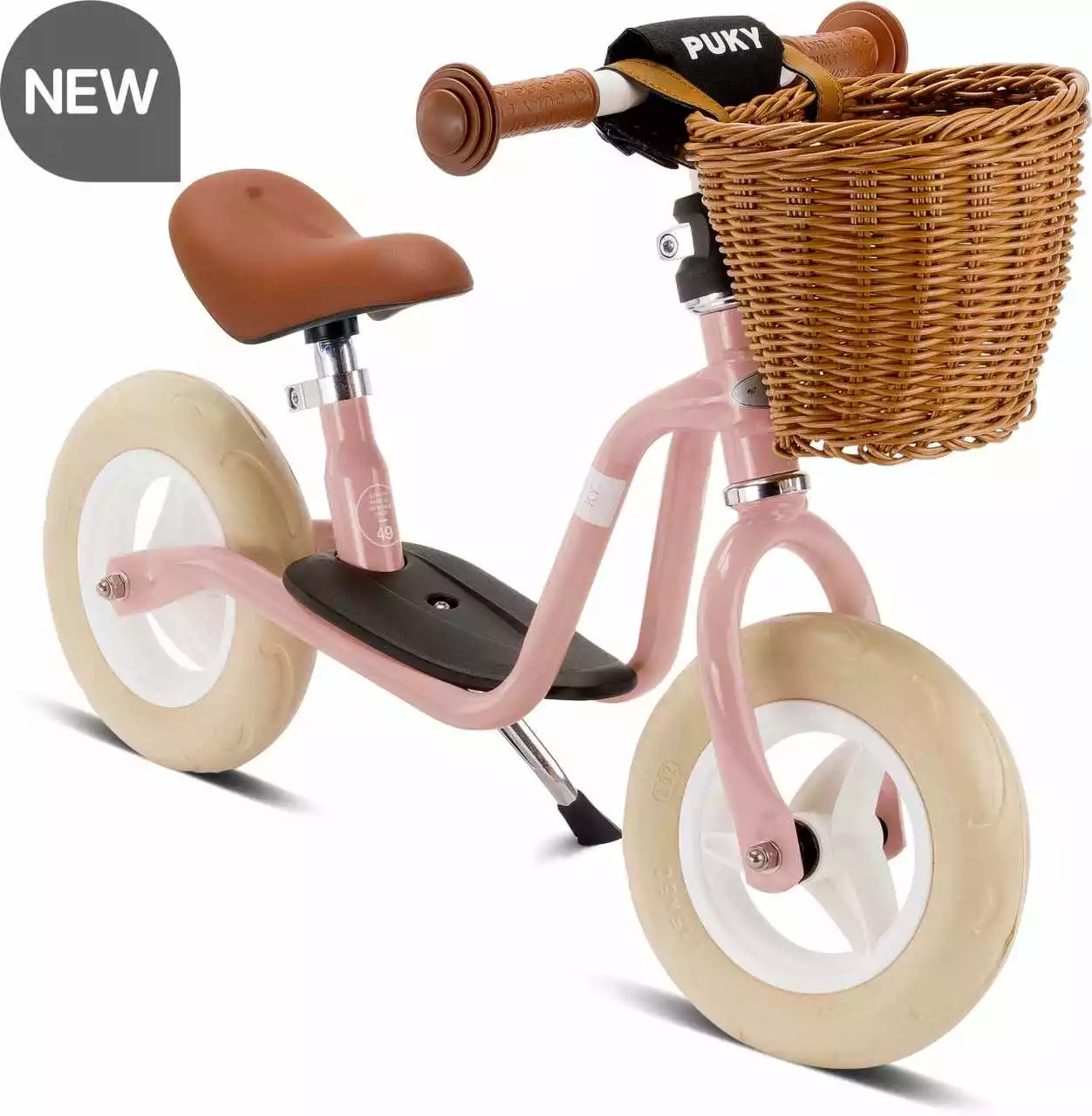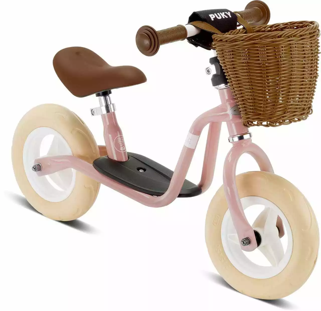 Das PUKY LR M Laufrad ist jetzt auch für die kleinen Helden ab 2 Jahren in stylischer Classic Optik erhältlich. Das PUKY LR M Classic kommt mit einem geflochtenen Lenkerkorb aus bruchsicherem Kunststoff. Splittern unmöglich! Sicherheitslenkergriffe und Lenkerpolster schützen die jungen Piloten zusätzlich. Wie von PUKY gewohnt lassen sich Lenker und Sattel in der Höhe verstellen, um eine möglichst lange Nutzungsdauer für das Kind zu gewährleisten. Der tiefe Rahmeneinstieg des PUKY LR M Classic vereinfacht das Auf- und Absteigen und sorgt für die nötige Sicherheit beim Losfahren und Bremsen. Bei längeren Rollphasen können die jungen Piloten ihre Füße problemlos auf dem cleveren Trittbrett des PUKY LR M Classic abstellen und die Fahrt genießen. Dafür sorgen nicht nur die hochwertige Schaumbereifung, sondern auch die kugelgelagerten Räder und die Lenkung. Mit den drei trendfarben retro-rosé, retro-blau und retro-grün, sowie den braunen Lenkergriffen und dem Sattel, zieht das PUKY LR M Classic alle Blicke auf sich.