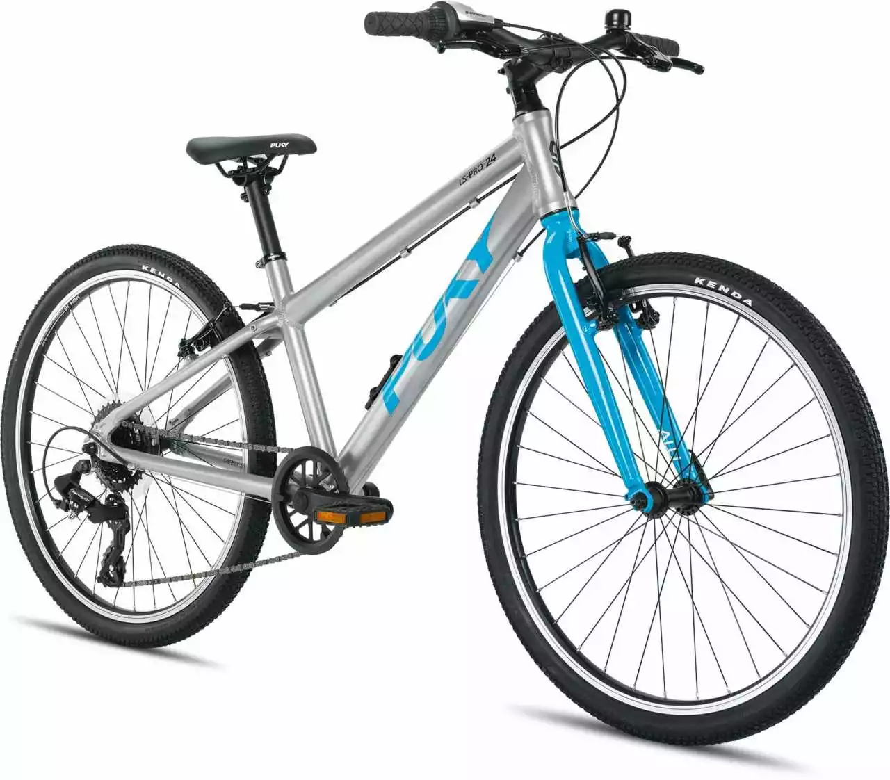 PUKY LS-PRO 24 ist dank einer sportlichen Geometrie und leichten Bauteilen der optimale Alltagsbegleiter. Rahmen, Gabel, Kurbel und Sattelstütze sind komplett aus Aluminium gefertigt. Der leicht zu bedienende Antrieb mit 8-Gang Kettenschaltung ist langlebig und sorgt für entspanntes Fahrvergnügen. Kinder ab 8 Jahren und einer Größe von 130 cm kommen mit LS-PRO 24 voll auf ihre Kosten. Gebremst wird der silberne Racer durch die kindgerechten V-Brakes, welche die Bremsleistung optimal dosieren. Ein sportlicher Ahead Vorbau und der höhenverstellbare Sattel bieten viel Spielraum für individuelle Fahrpositionen. Im Lieferumfang des PUYK LS-PRO 24 finden sich neben dem stabilen Seitenständer, eine Glocke, als auch ein Reflektoren-Set. PUKY LS-PRO 24 ist in den Farben silber-blau, silber-orange und silver-berry erhältlich.