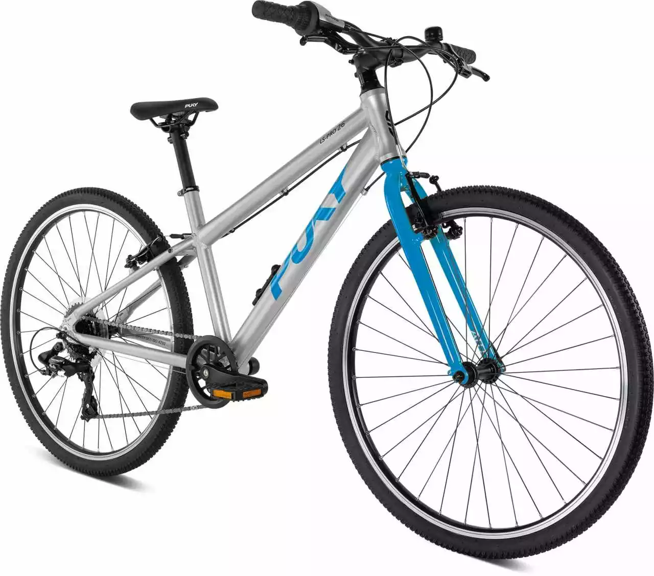 PUKY LS-PRO steht nicht nur für Lightweight Series, sondernauch für Spaß am Fahrradfahren. Und der ist mit unserem Topmodell für Kinder ab10 Jahren garantiert. Mit gewichtsoptimierten Komponenten wie Rahmen, Gabel undvielen weiteren, bringt das LS-PRO 26 gerade einmal auf 9,6 kg (ohne Pedale)auf die Waage. In Kombination mit der 8-Gang Kettenschaltung und demintuitiven 1-Fach Antrieb, steht einem erfolgreichen Wettrennen unter Freundennichts im Wege. Gebremst wir das LS-PRO 26 über zwei V-Brakes, welche das Bikezuverlässig zum Stehen bringen. Da es ab und zu mal etwas wilder zugehen kann,ist der silberne Rahmen mit einer stoßfesten Pulverbeschichtung versehen, diestrapazierfähig, wetterbeständig und absolut schadstofffrei ist. ImLieferumfang des LS-PRO 26 ist ein Reflektorenset, ein Seitenständer sowie eineGlocke enthalten.