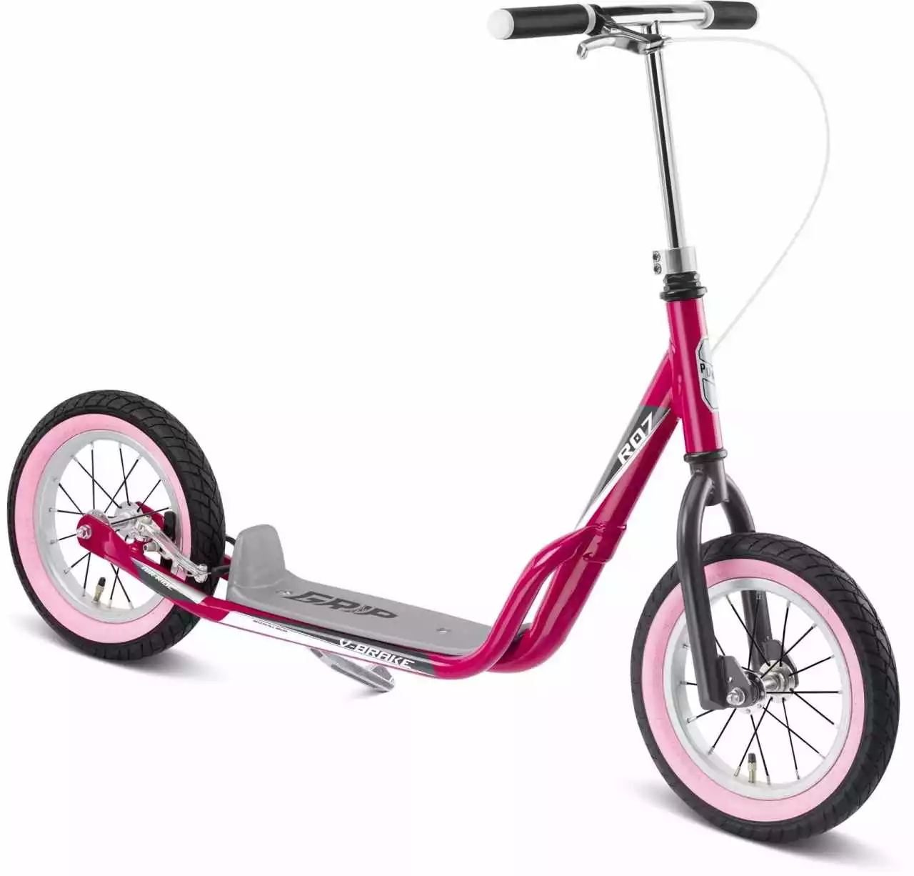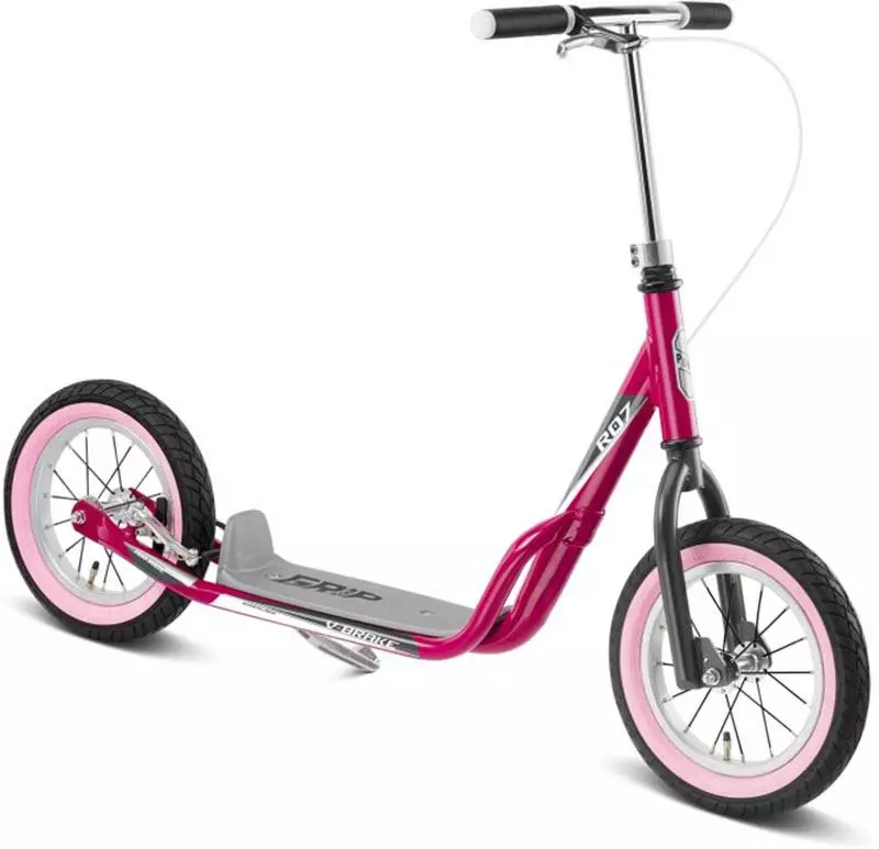 Der luftbereifte Scooter PUKY® R 07 L mit ausgewachsenen 12,5“ Speichenrädern überzeugt als hervorragendes Spaßfahrzeug in cooler Optik für größere Kinder und Jugendliche. Die bissige V-Brake am Hinterrad ermöglicht auch rasante Fahrmanöver. Dieser Street-Scooter verbindet so auf ideale Weise Fahrspaß mit dem Trainieren komplexer motorischer Muster, die für das Rollerfahren so typisch sind. So machen auch die Größeren noch viele neue Bewegungserfahrungen und haben Erfolgserlebnisse, die diesen Scooter bestimmt zu einem „Lieblingsfahrzeug“ machen. Erhältlich ist der PUKY® R 07 L in schwarz, weiß und berry.