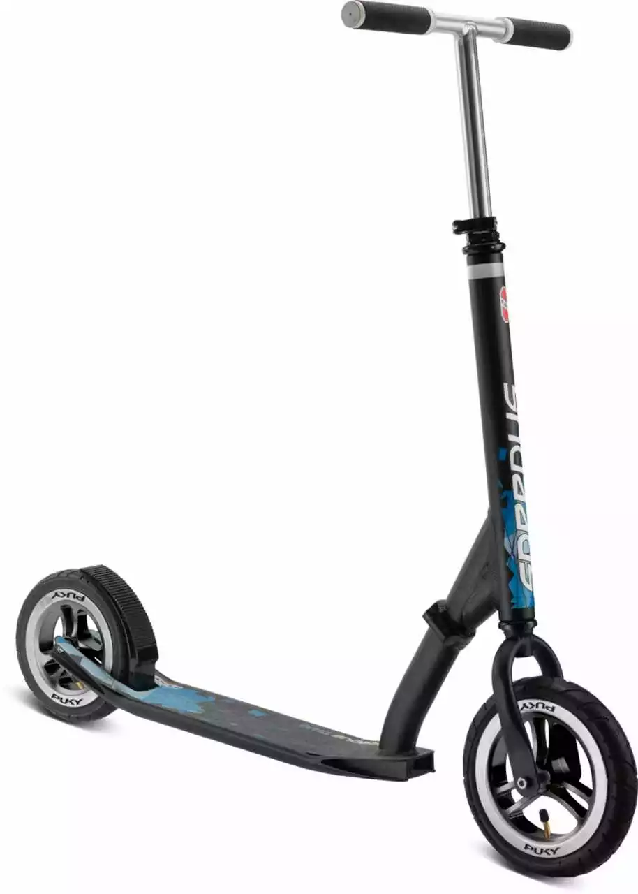 Mit dem Relaunch des beliebten Scooters PUKY SPEEDUS TWO setzen wir auf eine perfekt abgestimmte Geometrie und hochwertig gelagerte, extragroße Laufräder mit Luftbereifung (ABEC-7). Die neue Generation verfügt über besonders ausgeglichene Fahreigenschaften und ist dabei sehr leise. Der SPEEDUS TWO lässt sich spielend leicht für den Transport zusammenklappen und ist ab 5 Jahren bis hin zum Erwachsenenalter nutzbar. Der Seitenständer ist platzsparend im großen Trittbrett integriert.