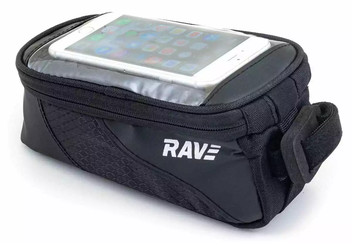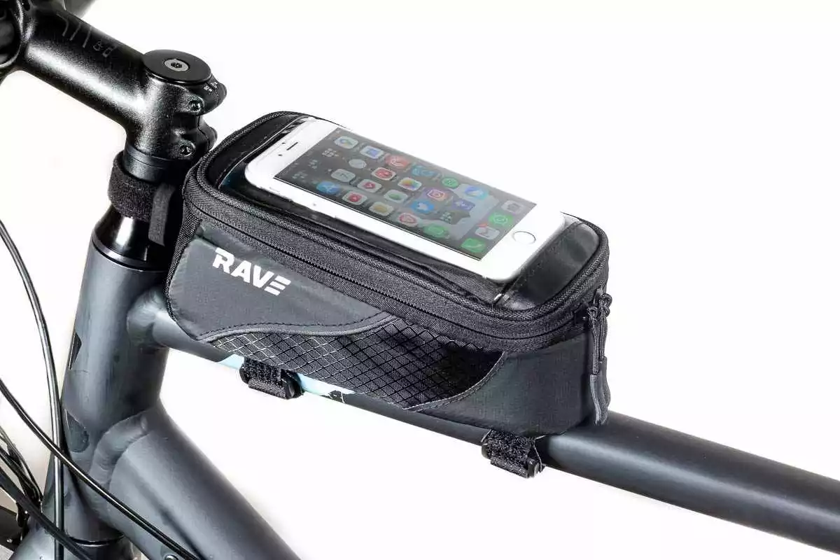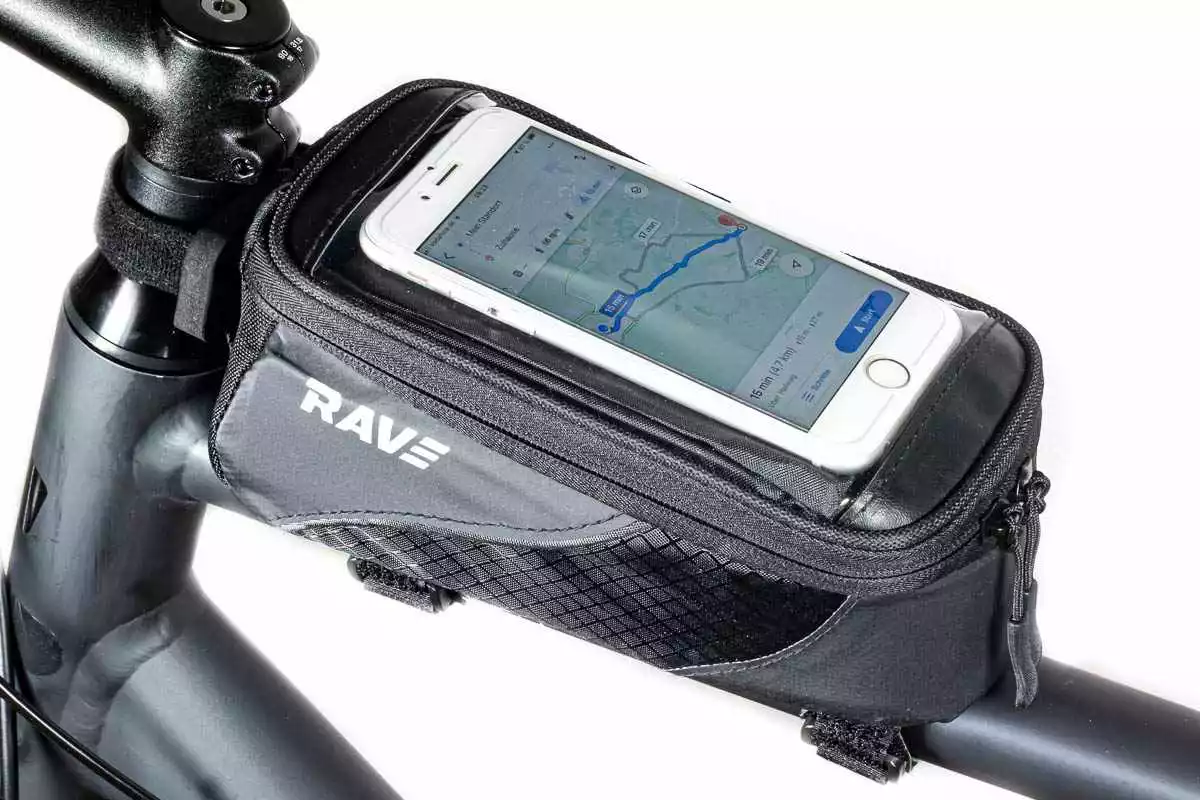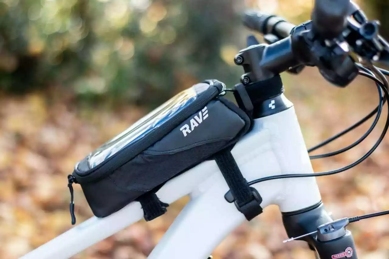 Mit der neuen Oberrohrtasche von RAVE bleibst du auf deiner Tour immer aktiv mit deinem Handy verbunden.
